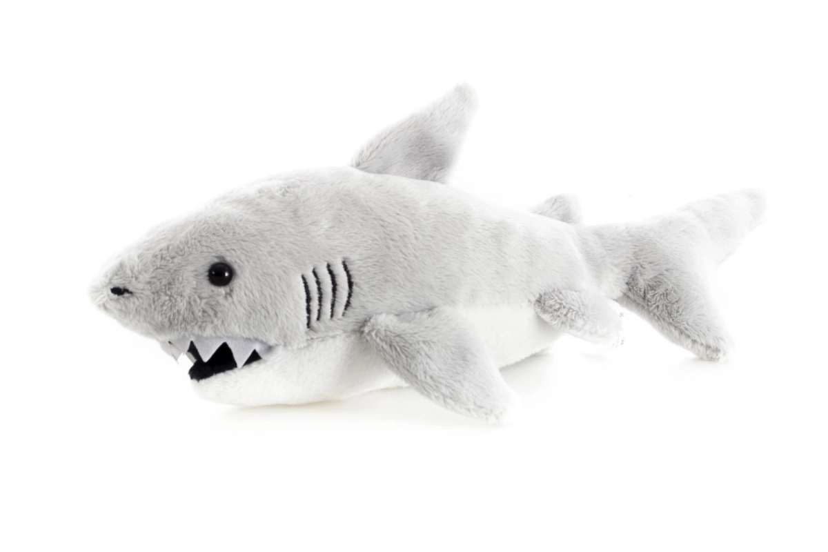 A bájos plüss cápa puha, selymes és a legkisebbek számára is biztonságos. Tökéletes ölelgetéshez és első kis barátnak a kiságyba. Méretek: 26 × 9 × 7 cm. Kor 0+.