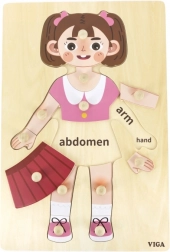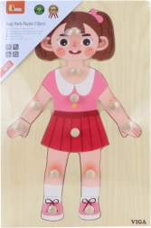 Ez a fa beillesztő – lány nagyszerű eszköz az emberi test első megismeréséhez és a szem–kéz koordináció fejlesztéséhez. Masszív kivitelének és kellemes megjelenésének köszönhetően a gyerekek gyorsan megszeretik, és játékosan gyakorolják a finommotorikát, a türelmet és a koncentrációt.