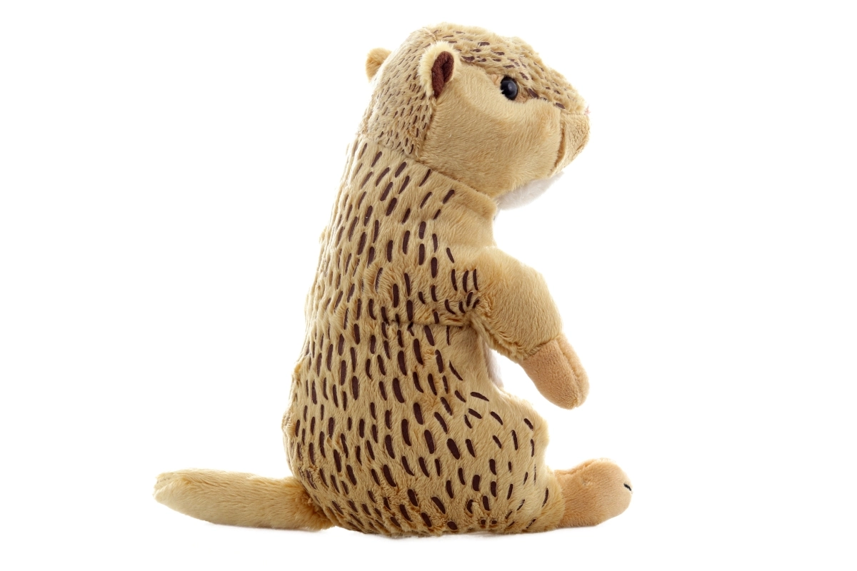Ez a plüss európai ürge valósághű megjelenésével, finom szőrével és természetes, pettyes színezésével örömet szerez. Hímzett szemekkel és orrocskával készül, apró műanyag részek nélkül, így a legkisebbek számára is alkalmas. Az ülő forma biztosítja, hogy a játék szépen tartsa az alakját, és mindig kész legyen ölelésre és játékra.