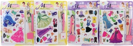 Szórakoztató készlet kis stylistoknak: mágneses állvány babával és kb. 14 darab mágneses ruhával és kiegészítővel. Fejleszti a kreativitást, a finommotorikát és a fantáziát. Ideális ajándék 3 éves kortól.