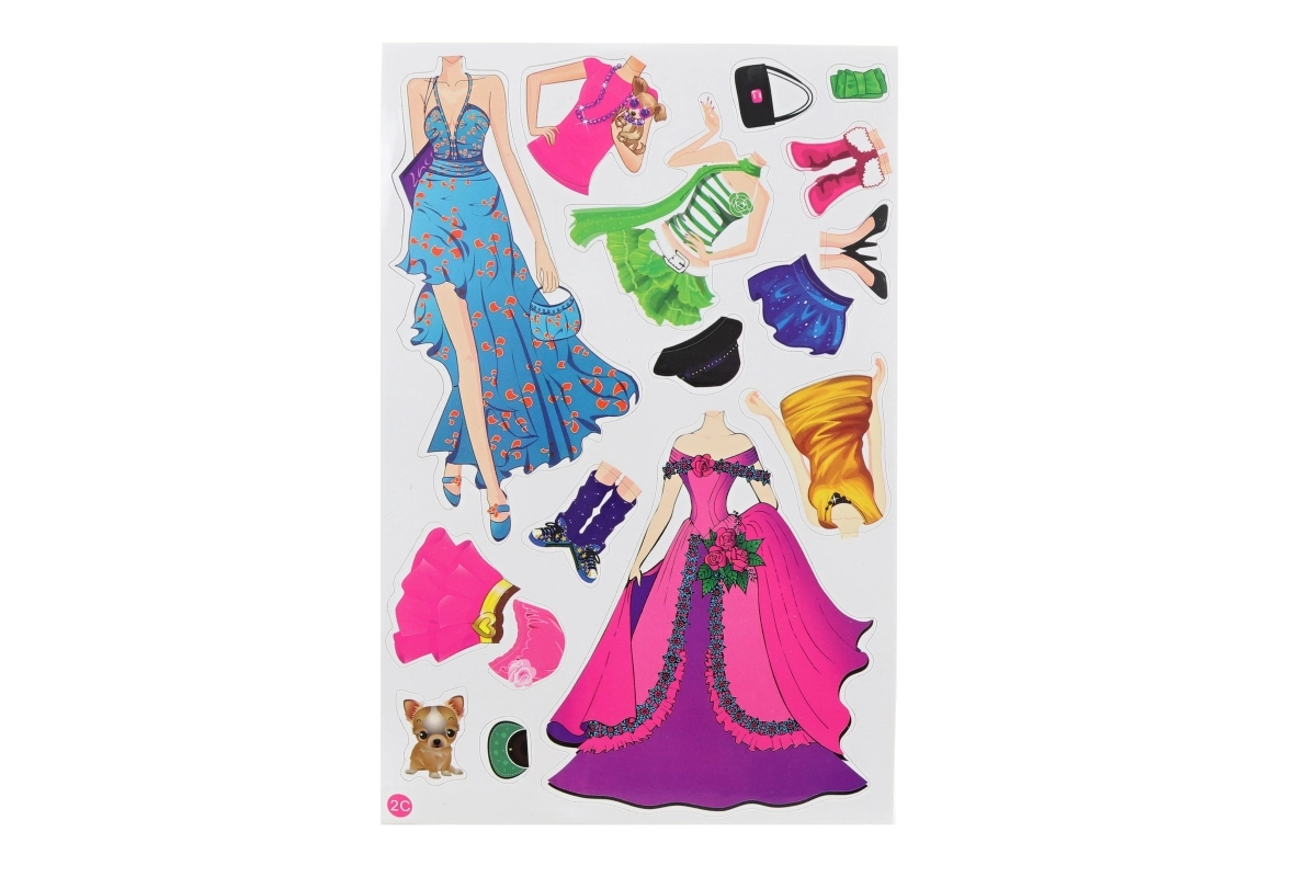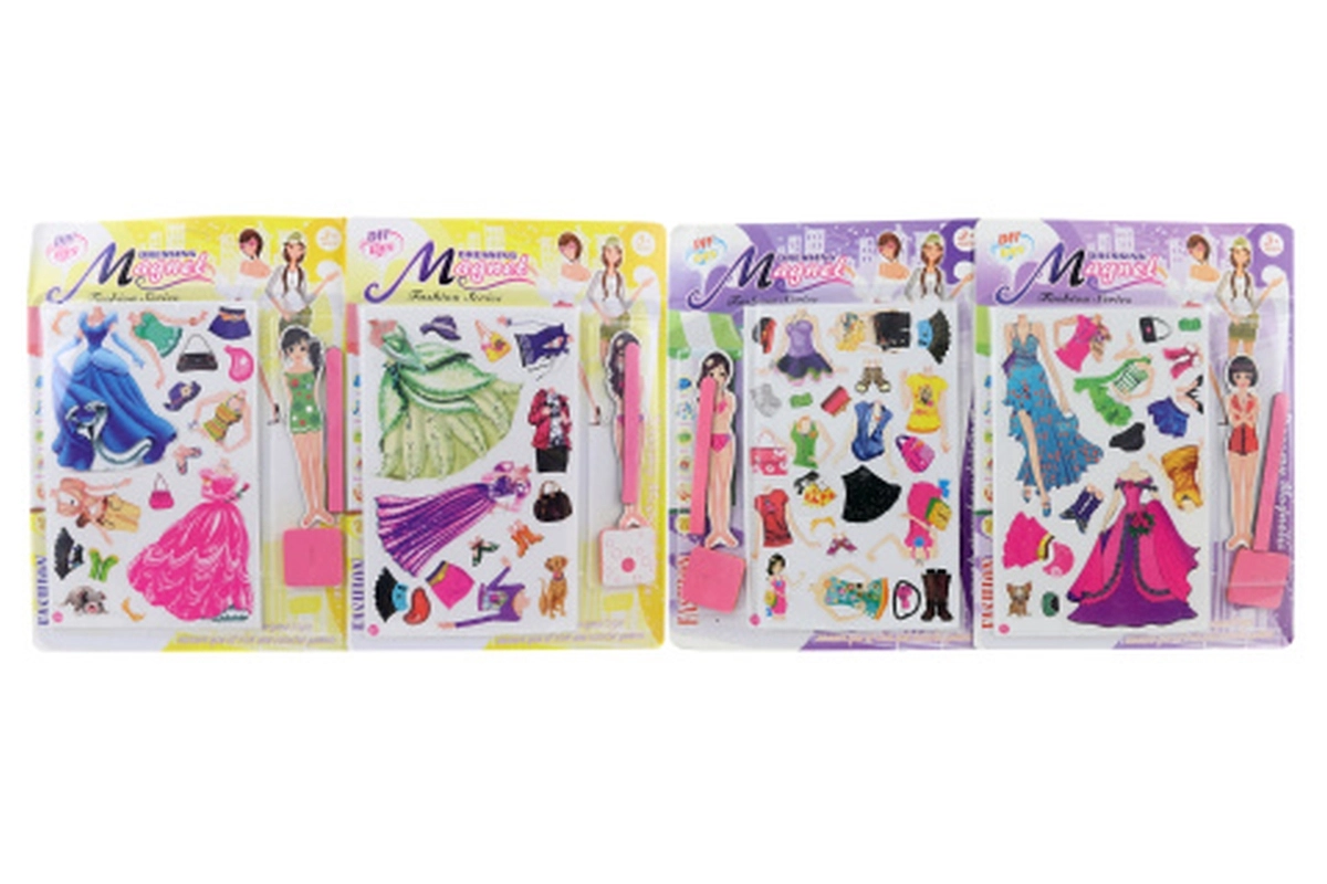 - Kreatív kombinálás: kb. 14 mágneses elem – ruhák, cipők és különféle kiegészítők.