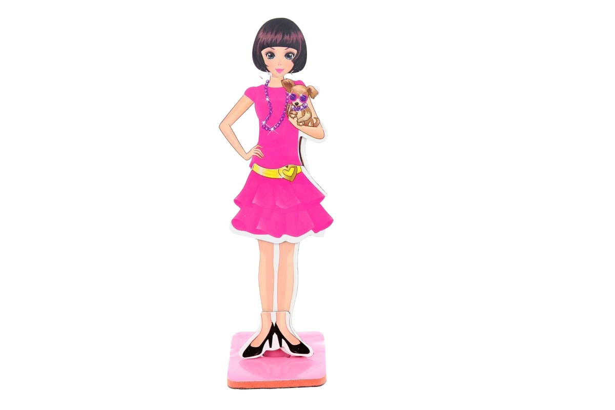 Fedezd fel a mágneses öltöztetés varázsát! A gyerekek könnyedén és újra meg újra létrehozhatják saját divatkombinációikat a mágneses ruhácskáknak, cipőknek és kiegészítőknek köszönhetően. A praktikus talppal ellátott állvány stabilan tartja a babát, így az öltöztetés kényelmes és rendetlenségmentes.
