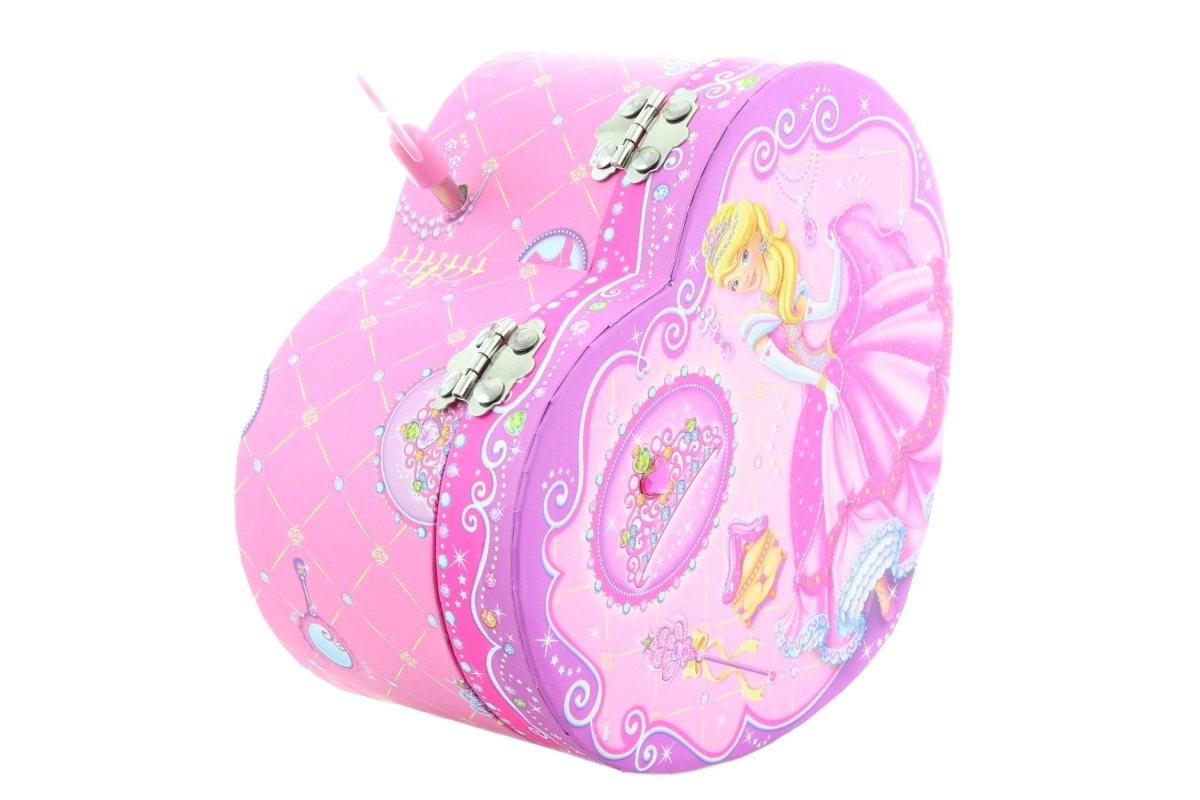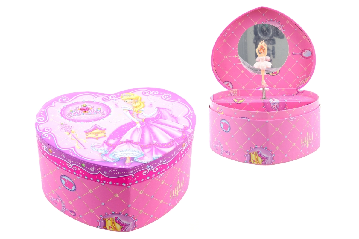 Ez a bájos, rózsaszín, hercegnős stílusú ékszerdoboz ideális gyűrűk, fülbevalók és egyéb apróságok tárolására. Kinyitáskor a kerek tükör előtt forogni kezd a balerina, és kellemes zene szólal meg, varázslatos hangulatot teremtve.