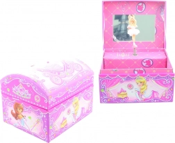 Ez a bájos, zenélő szerkezettel ellátott ékszerdoboz örömet szerez minden gyermeknek, aki szereti a rendet a kincsei között és a varázslatos részleteket. A fedél felnyitásakor a tükör előtt forogni kezd a balerina, és felcsendül a dallam, amely mosolyt csal az arcra.