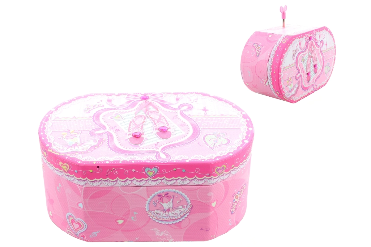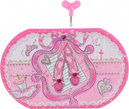 A belső tükör megkönnyíti az ékszerpróbát, míg az ovális forma és a balettmotívumok díszítése szépen feldíszíti a gyerekszobát vagy a fésülködőasztalt. Az ékszerdoboz ideális gyűrűk, fülbevalók és apró kincsek tárolására.