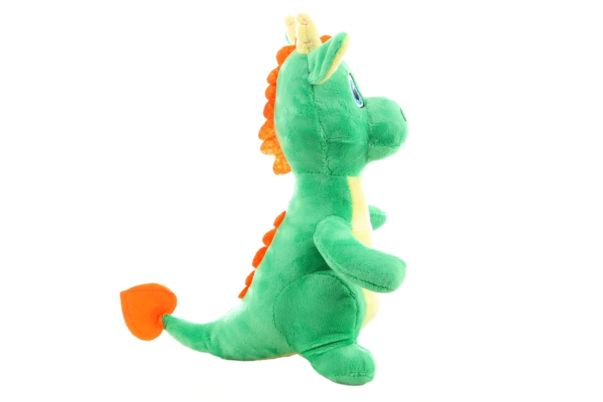 Ez a zöld plüss sárkányka kontrasztos pocakkal és bájos részletekkel gyorsan minden gyermek kedvenc társává válik. Pihe-puha felületének és bolyhos töltetének köszönhetően ideális megnyugtató öleléshez és gyengéd játékhoz a nap folyamán.