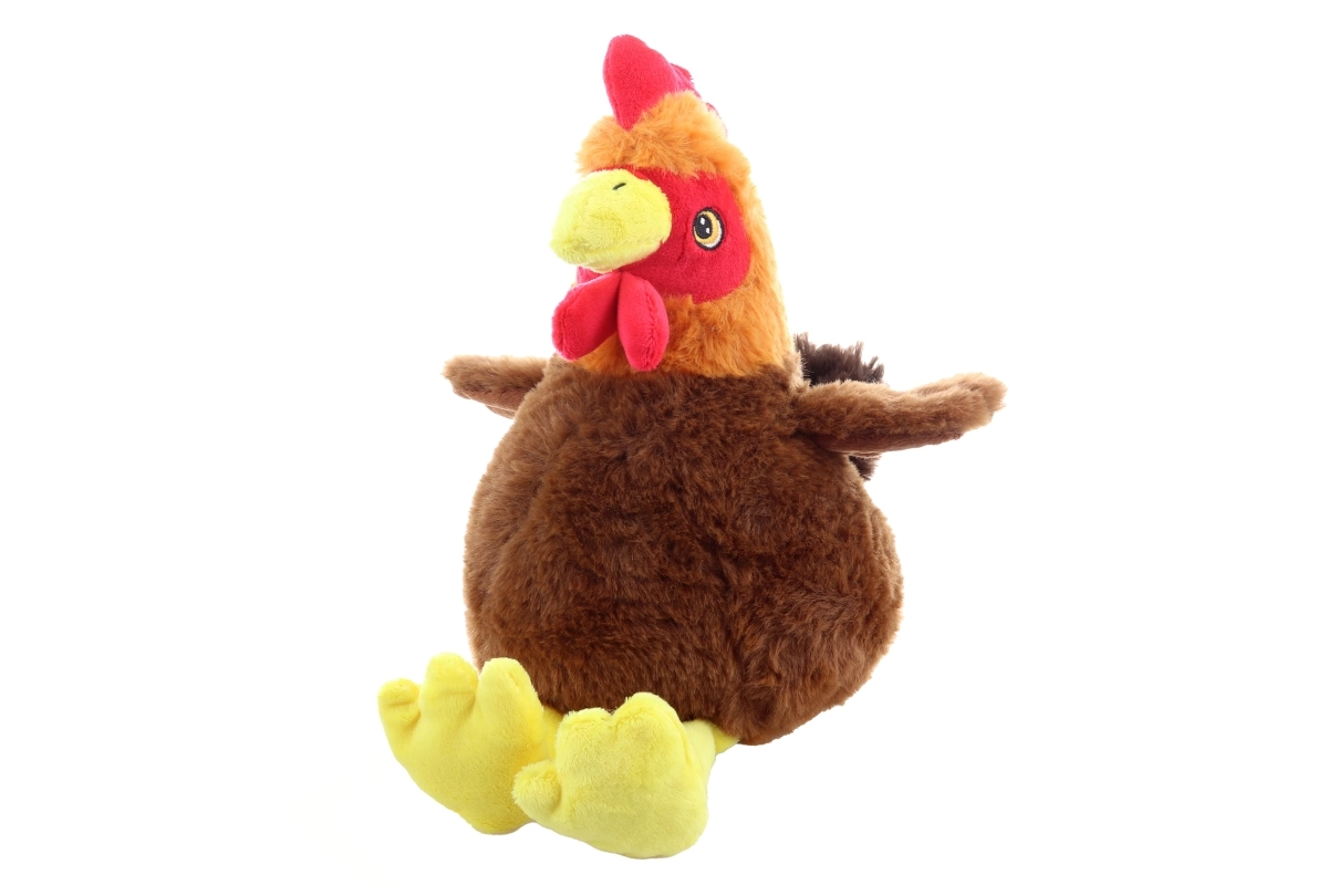 A hímzett részletek és az apró, levehető elemek hiánya miatt a csirke már 0+ kortól remek játék.