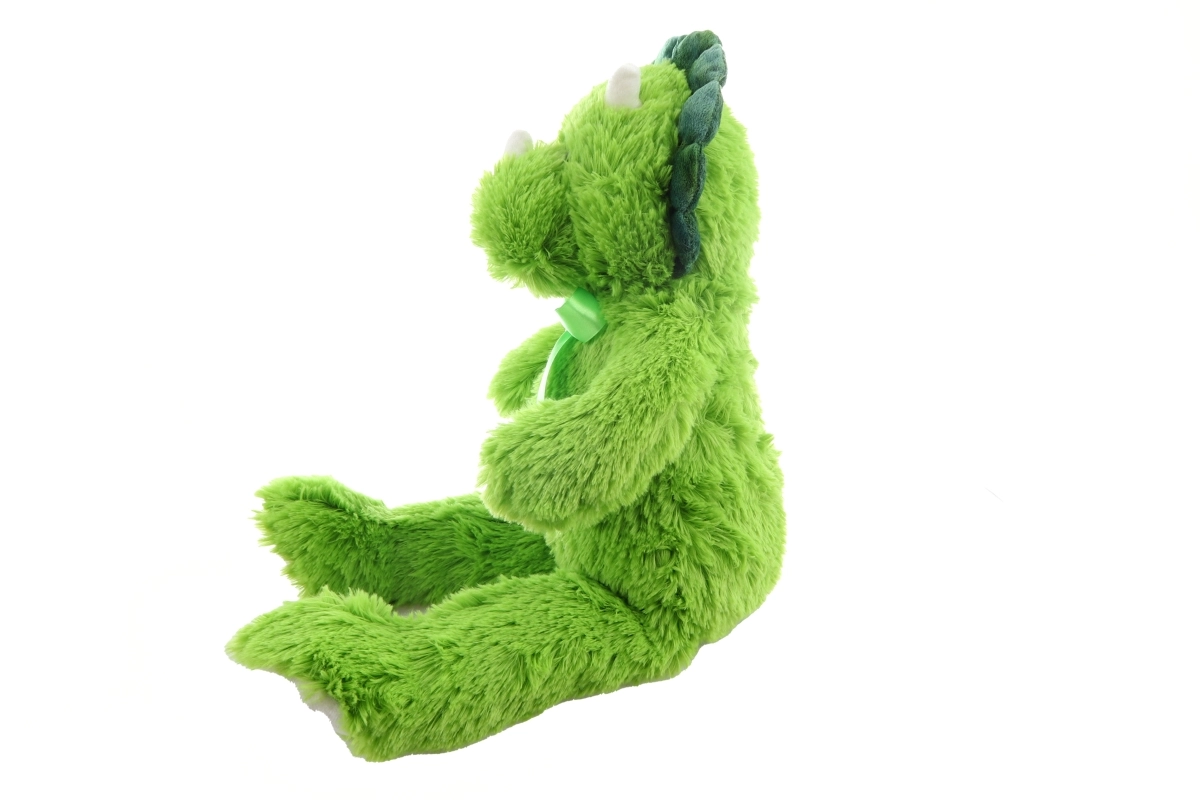 A kis szarvakkal, hátitüskékkel és masnival díszített dizájn barátságos és vidám, így bármely gyerekszobába illik. A minőségi kivitelezésnek köszönhetően a dinoszaurusz alkalmas mindennapos ölelgetésre és hosszú távú használatra.
