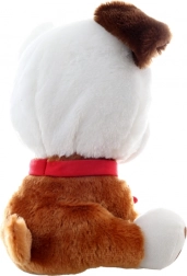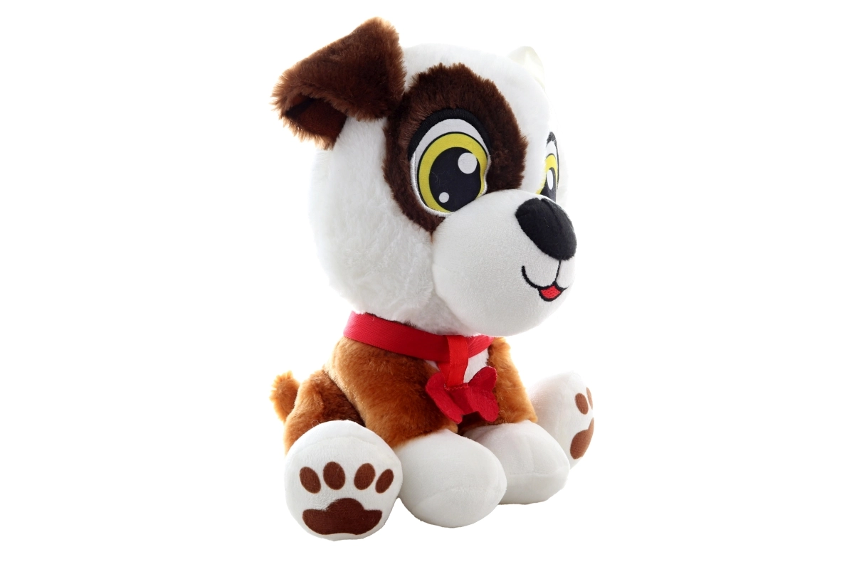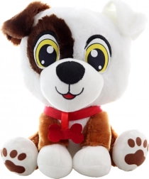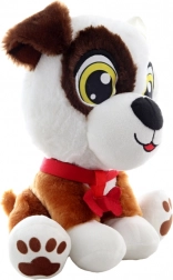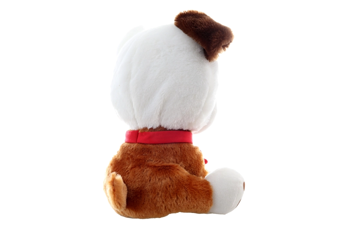 Ez a puha plüss kutyus fehér-barna színkombinációban ölelésre termett. Hímzett arcrészletekkel, nyomott mintás tappancsokkal és piros gallérral masnival és csonttal barátságos, játékos hatást kelt. A legkisebbek számára is biztonságos, és remekül illik a kiságyba vagy a gyerekszobába dekorációnak is.