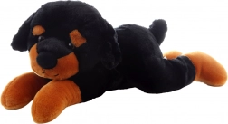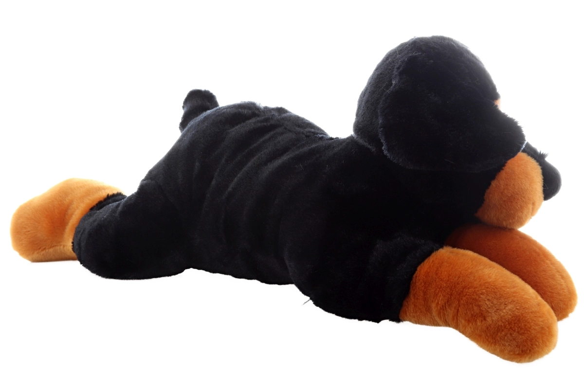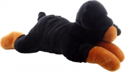 Ez a plüss kutya élethű színösszeállítással – fekete bundával és barna tappancsokkal, orrocskával – készen áll a végtelen ölelgetésre. A finom felületnek és a minőségi töltetnek köszönhetően kellemes tapintású, és remekül alkalmazkodik a gyermek karjaihoz.