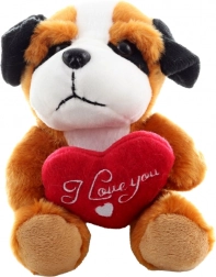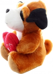 Ez a pihe-puha plüss kutyus szívecskével azonnal elnyeri kicsik és nagyok szívét. A barna-fehér bunda, a bájos fülecskék és a „I love you”/„I love U” feliratú piros szív kombinációja tökéletes ajándék Valentin-napra, születésnapra vagy csak úgy, örömszerzésre.