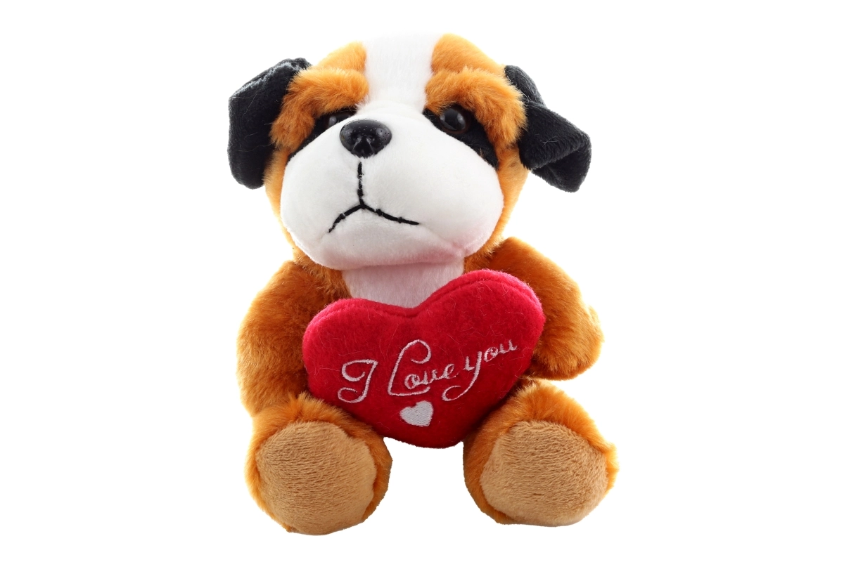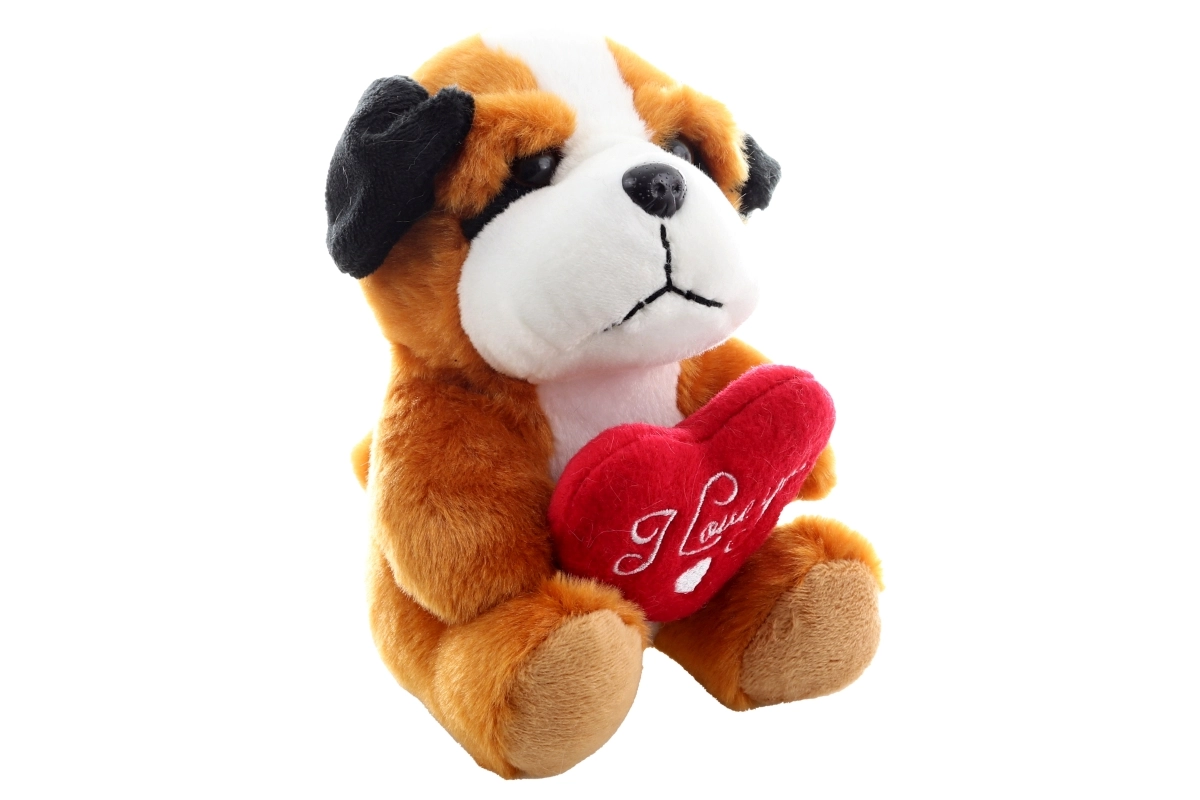 A bájos plüss kutyus szívecskével tökéletes szerelmi ajándék és kedves dísz a gyerekszobába. Puha, bolyhos, selymes szőre, ölelni való kivitel, és egy piros szívecskét tart romantikus üzenettel. Már 0+ kortól ajánlott.