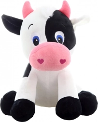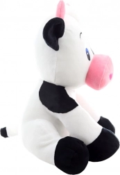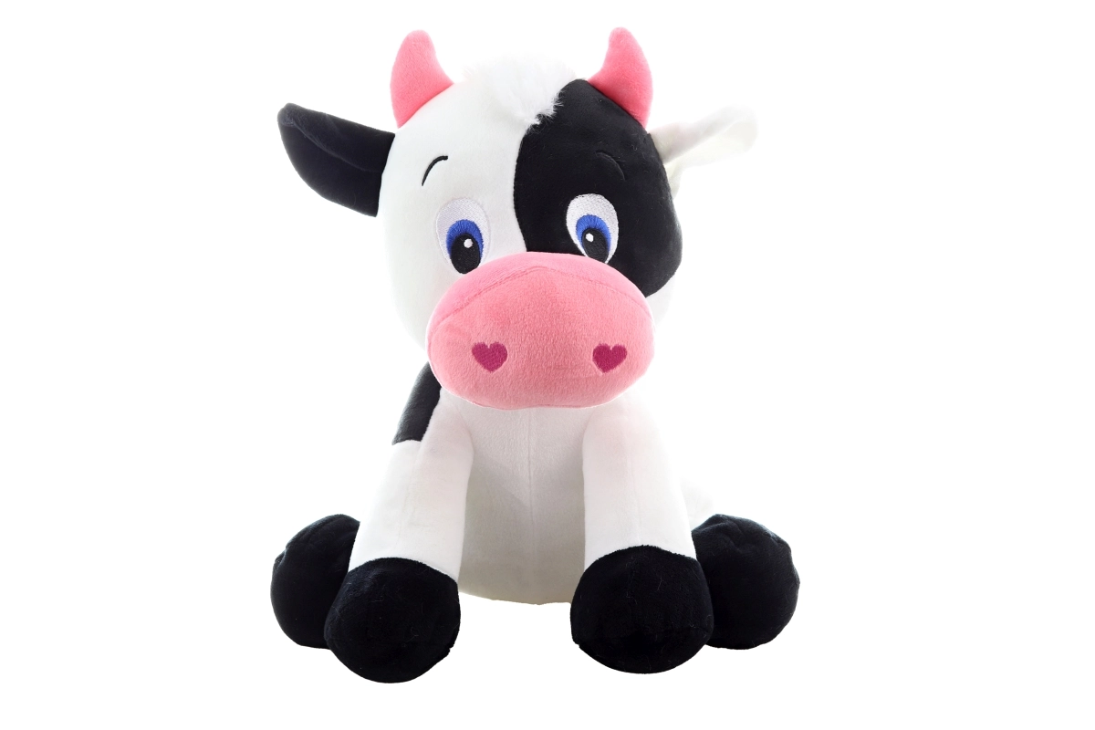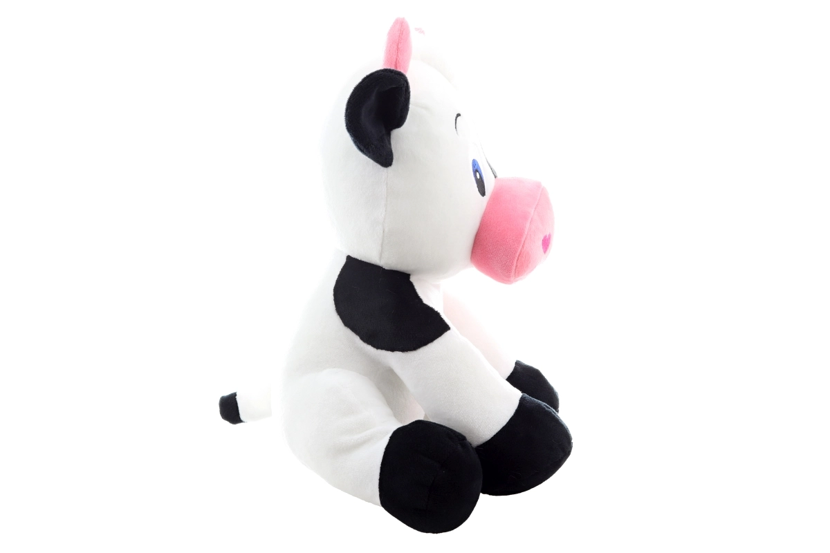 A fekete-fehér foltos dizájn, a rózsaszín orrocska és a szarvak barátságos megjelenést kölcsönöznek a játéknak. A stabil, ülő kivitelnek köszönhetően a gyerekszoba kedves dísze is lehet.