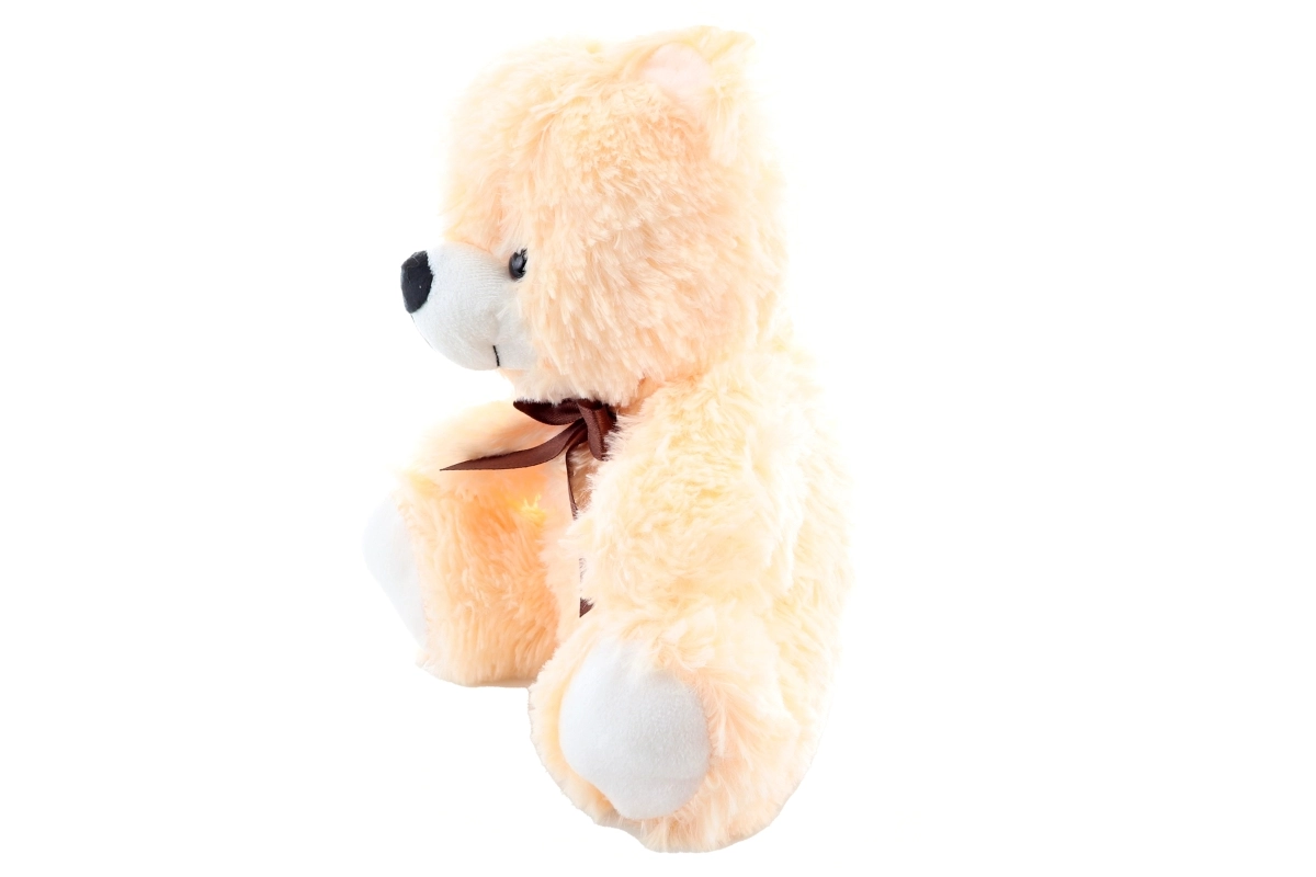 Kontrasztos tappancsok, hímzett arcvonások és elegáns barna masni kölcsönöznek a macinak bájos megjelenést, amely a gyerekeknek és felnőtteknek is tetszik.