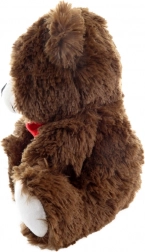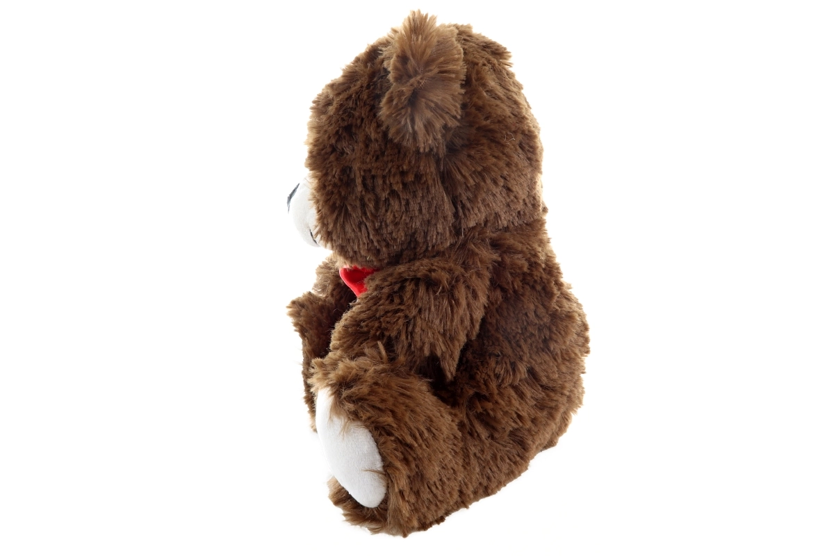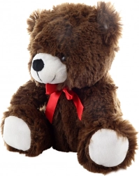 Ez a sötétbarna plüss mackó a gyerekek és felnőttek szívét egyaránt elrabolja. Puha szőre, kontrasztos fehér tappancsai és orrocskája, kifejező szemecskéi és bájos piros masnija van. Minőségi kidolgozásának és lágy töltetének köszönhetően tökéletes ölelgetéshez, altatáshoz vagy a gyerekszoba díszeként.