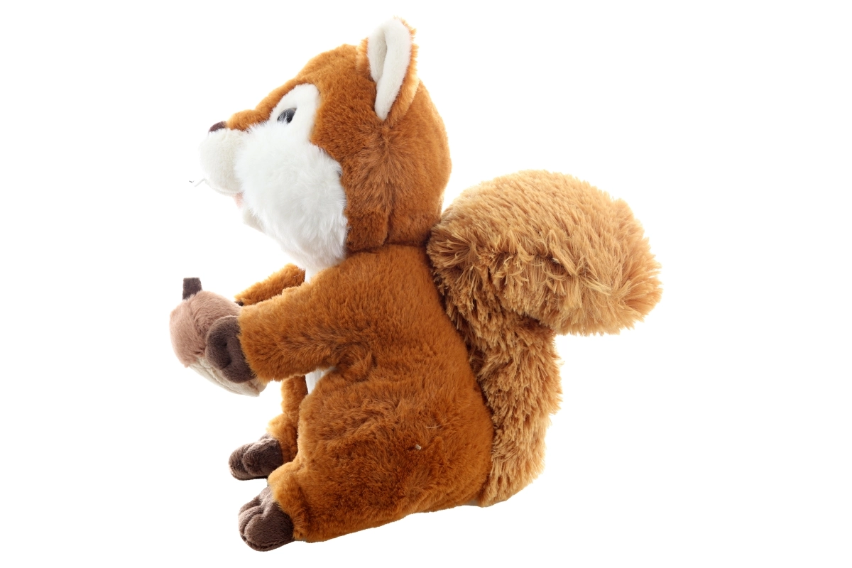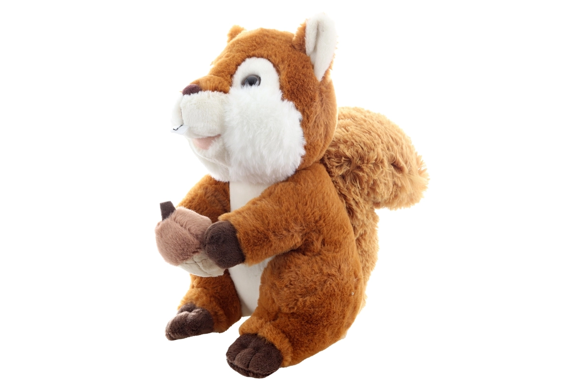 A 23 cm-es, aranyos plüss mókus ideális ölelgetnivaló a 0+ korosztálynak. Puha, selymes bundája, pihés farka van, és a mancsában egy kis makkot tart. Tökéletes ölelgetéshez, játékhoz és a gyerekszoba dekorációjaként.