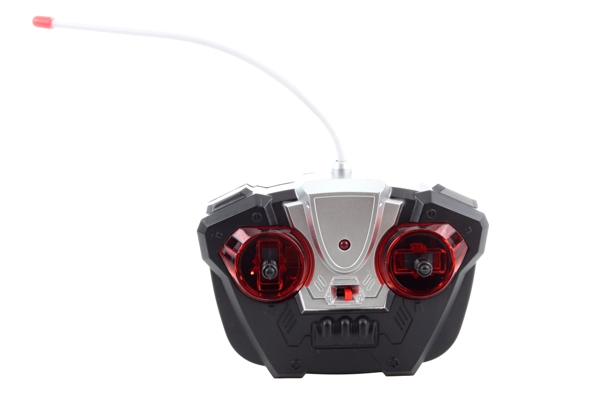 Kétkaros vezérlő áttekinthető gombkiosztással, LED jelzéssel és kihúzható antennával a stabil, kb. 5 m hatótávú jelhez.
