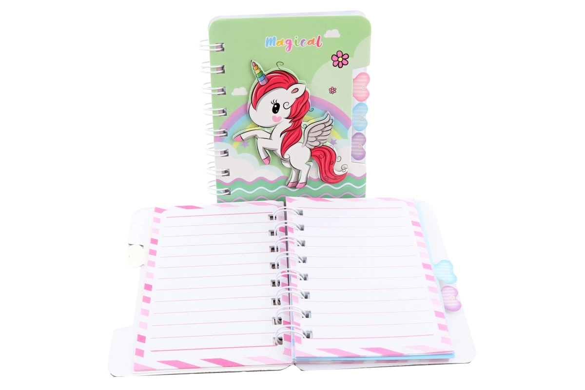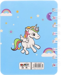 Cuki és praktikus jegyzetfüzetet keres kézitáskába, aktatáskába vagy tolltartóba? Ez a kompakt, pasztell színű unikornisos füzet vidámságot visz a mindennapi jegyzetelésbe. A színes szegélyű, vonalas lapok áttekinthető írást adnak, a spirálkötés pedig kényelmes lapozást és teljesen kihajtott használatot tesz lehetővé.