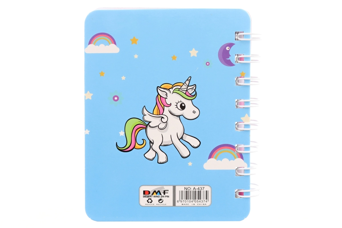 Aranyos mini jegyzetfüzet unikornis mintával, amely örömet szerez gyerekeknek és felnőtteknek egyaránt. Kompakt méreteinek köszönhetően bármelyik táskába belefér, és ideális gyors jegyzetekhez vagy rajzokhoz. Színes, vonalas lapokkal, spirálkötéssel a könnyű lapozáshoz és többféle pasztell unikornis dizájnnal. Remek ajándéknak vagy iskolai kiegészítőnek. Figyelmeztetés: a termék nem játék.