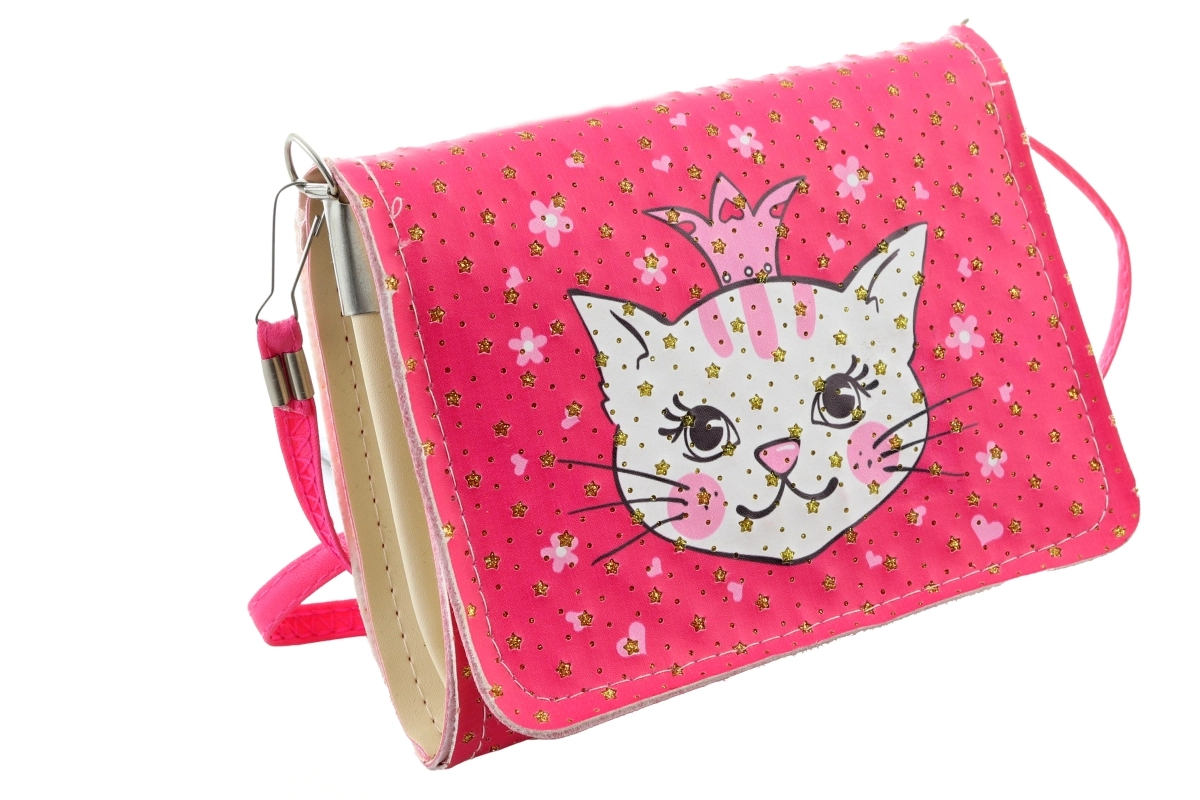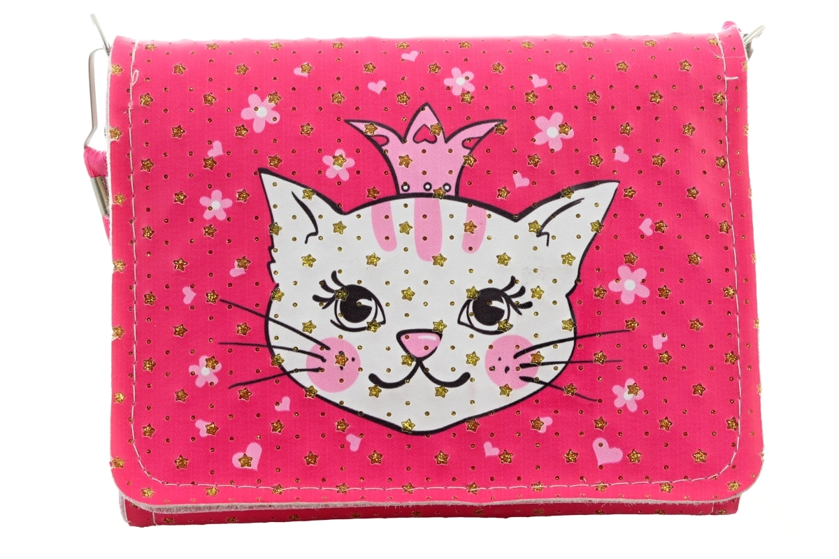 A cuki gyermek válltáska cica motívummal minden kis parádés kislányt megörvendeztet. Kínál szép, telt színt, 2 belső rekeszt apróságoknak és kényelmes patentos zárást. A kompakt 15 × 12 × 4 cm-es méret ideális 3 éves kortól.