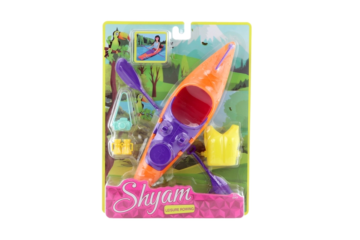 Élvezd a vízi kalandokat ezzel a bájos szettel – baba kajak remek kiegészítőkkel. A csomag része egy mentőmellény, evezők, távcső és fényképezőgép, mind tartós műanyagból a biztonságos és könnyű játékért. Ideális 3 éves kortól.