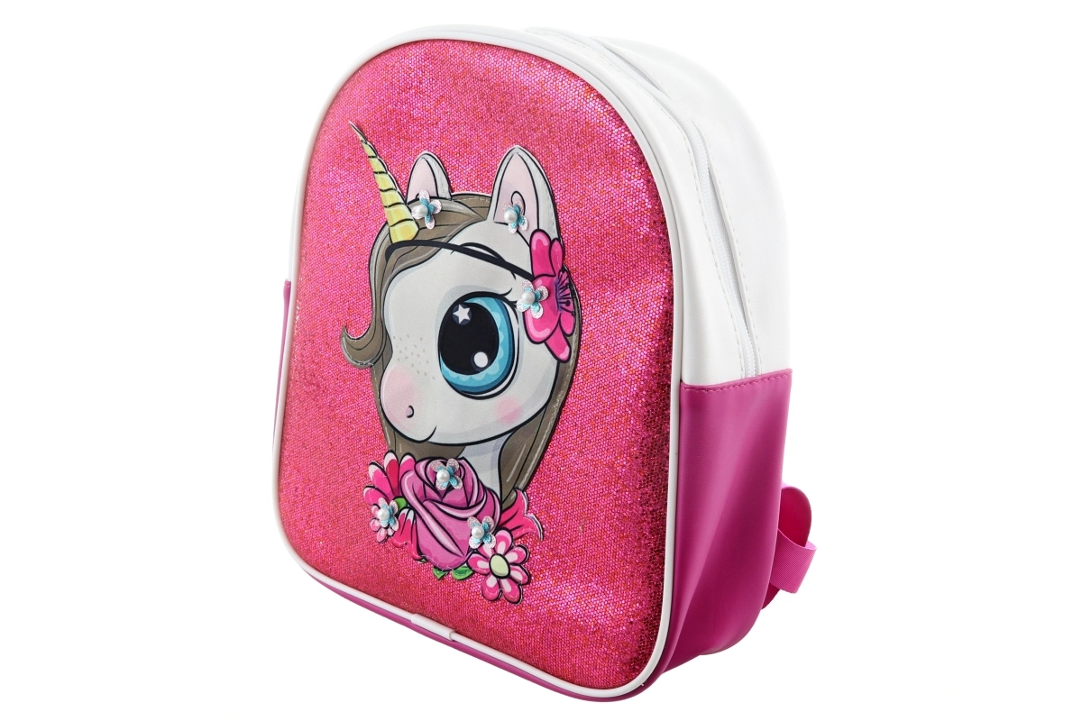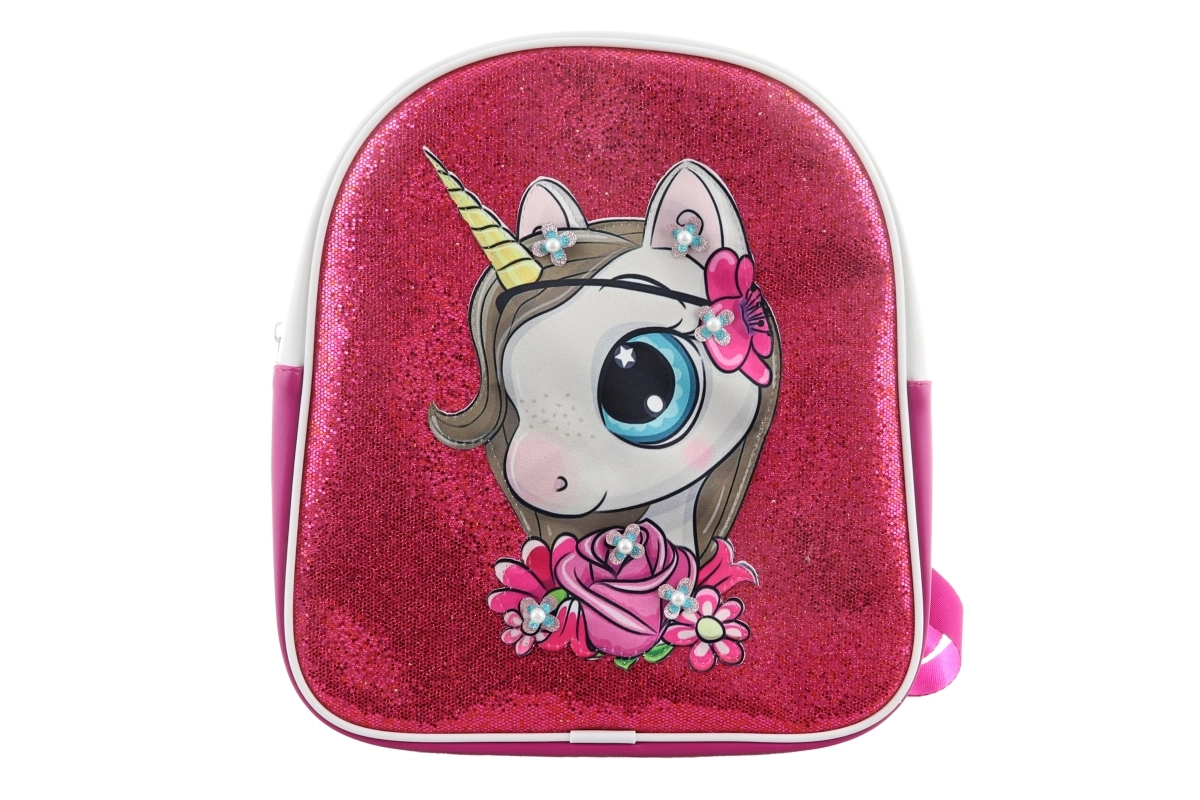Ez a kompakt és könnyű hátizsák a varázslatos unikornis mintával ideális gyermekek számára. Ötvözi a praktikus elrendezést a vonzó, csillogó dizájnnal, amelyet a kicsik imádnak. A cipzáras fő rekeszben elfér az uzsonna, egy játék és az utazáshoz szükséges apróságok.