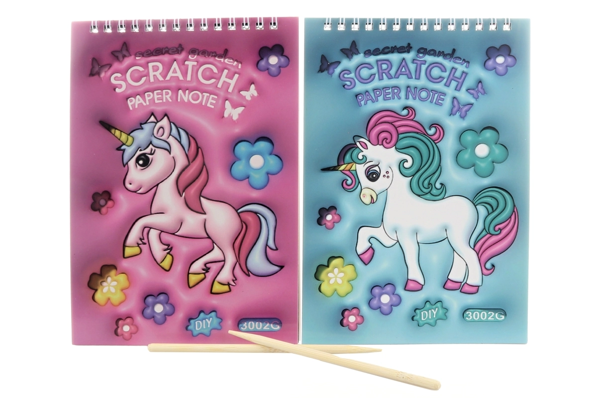 Kreatív kaparós füzet unikornis motívummal, amely örömet szerez minden kis művésznek. Tartalmaz 8 fekete lapot színes alappal, amelyekre a mellékelt fa tollal eredeti képeket lehet alkotni. A praktikus spirálkötés és a kompakt 14 × 20 cm méret ideálissá teszi utazáshoz és otthonra egyaránt.