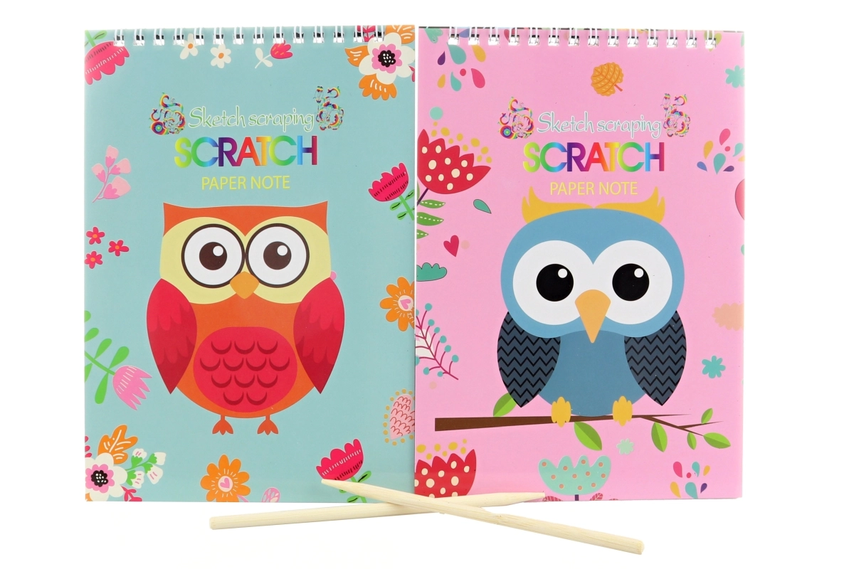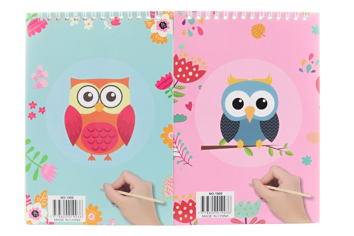 Kreatív kapargatós füzet bagoly mintával, amely órákig tartó alkotó szórakozást nyújt gyerekeknek és felnőtteknek. Tartalmaz 8 fekete lapot színes alappal, amelyeken a mellékelt fa tollal saját rajzokat kapargathat elő. A praktikus spirálkötés megkönnyíti a lapozást, az alkotás kényelmes otthon és útközben is.
