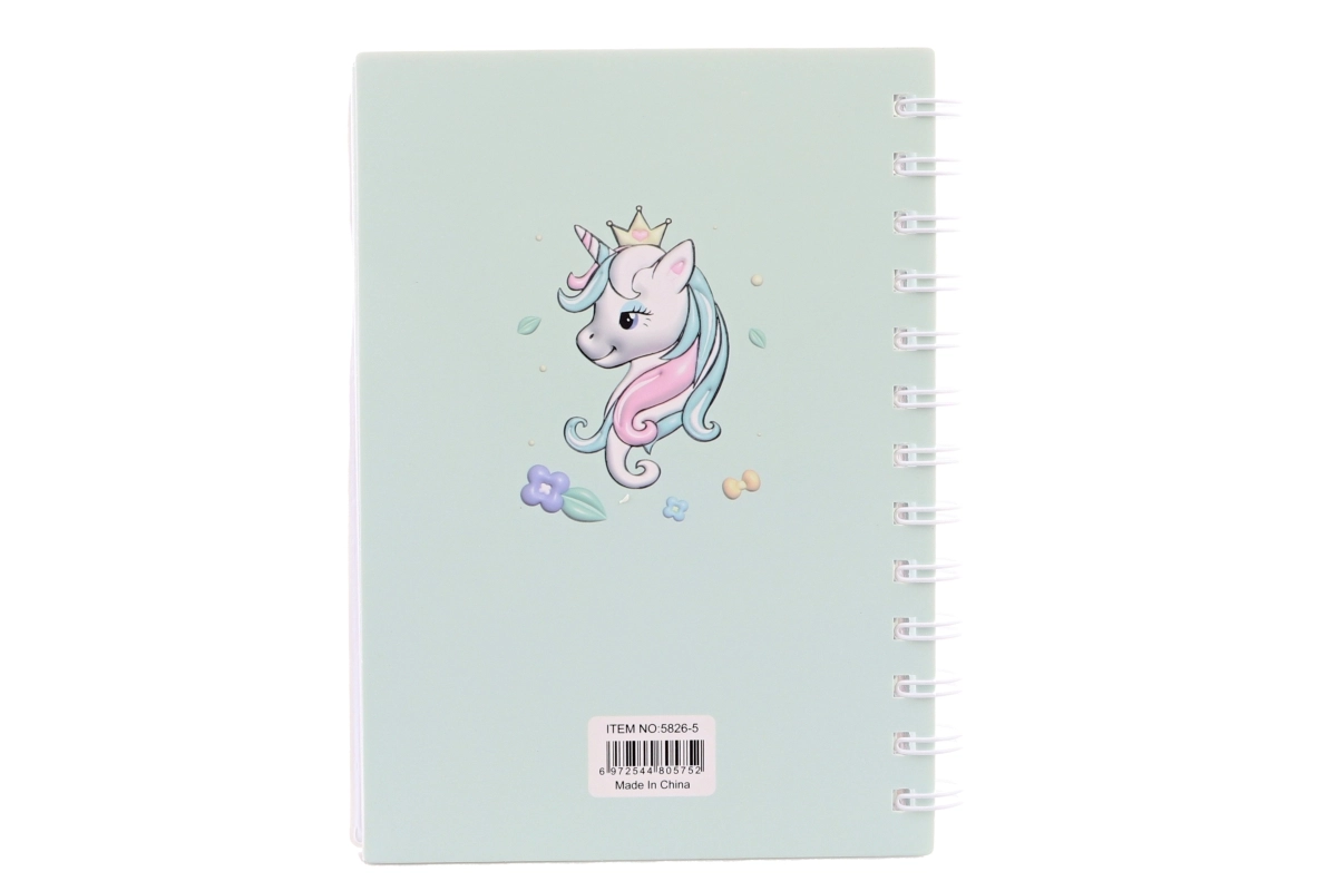 A párnázott és formázott elülső borító a bájos unikornis motívummal stílust ad a füzetnek, és egyben védi az oldalakat.