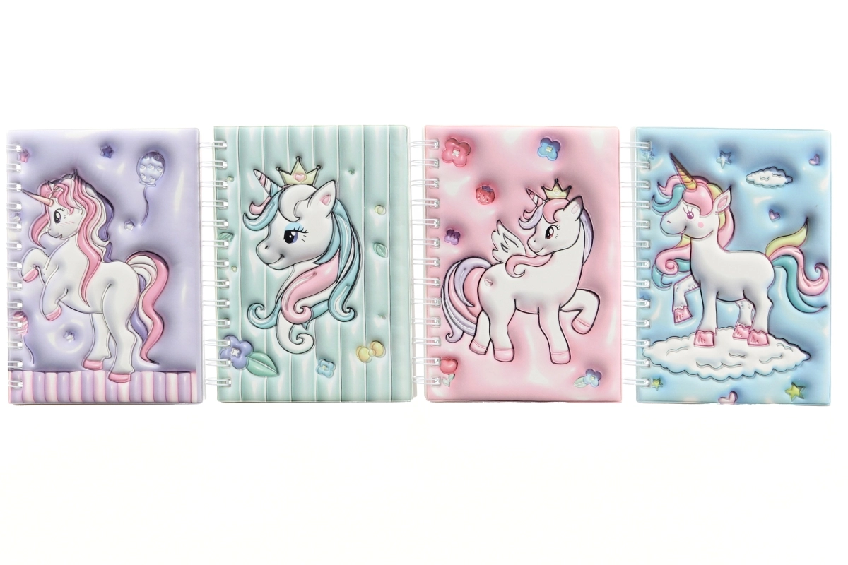 Az elegáns, unikornisos jegyzetfüzet ideális jegyzetekhez, naplóíráshoz, iskolai feljegyzésekhez és tervezéshez. A minőségi spirálkötés egyben tartja az oldalakat, megkönnyíti a lapozást és lehetővé teszi a teljesen síkban való nyitást. A párnázott, formázott borítók 3D hatással egyedi megjelenést és kellemes tapintást biztosítanak.