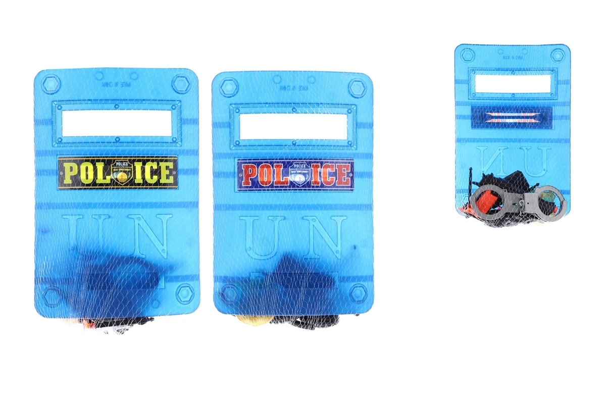 A gyerek rendőrségi készlet mindent tartalmaz az izgalmas törvényőrös szerepjátékhoz. Tartozékai: pajzs, adóvevő, bilincs, pisztoly 3 tapadókorongos tölténnyel, 2 gránát és jelvény. Tartós műanyagból készült, hálóban csomagolva. Ideális 3 éves kortól.
