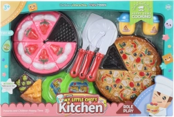 Ez a színes készlet élethű főzős és terítős játékélményt nyújt. Műanyag ételek és edények válogatását tartalmazza, amelyekkel a gyerekek otthon és az óvodában is sokat szórakozhatnak. A könnyű és biztonságos anyagnak köszönhetően a használat egyszerű és biztonságos.
