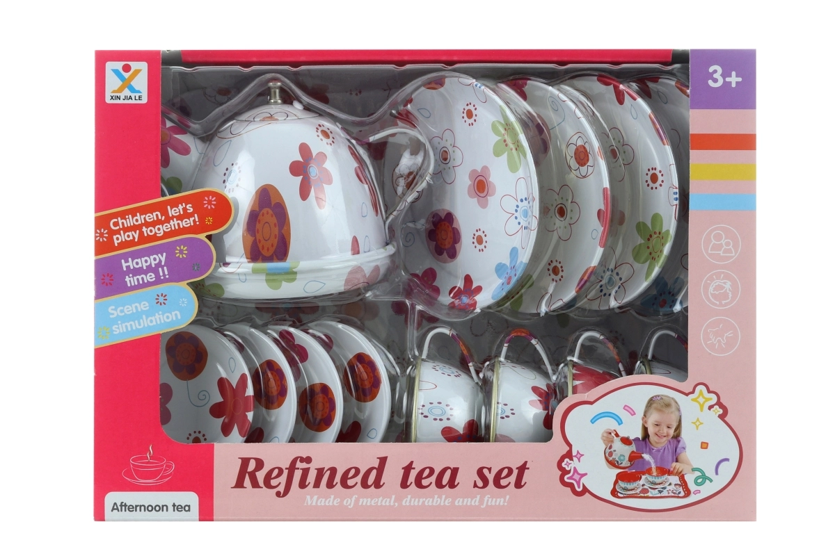 A bájos bádog teáskészlet virágmintával minden kis háziasszony szívét megdobogtatja. Ideális gyerek teapartikhoz és a társas játék fejlesztéséhez. Mindent tartalmaz a tálaláshoz, és biztonságos 3 éves kortól. Könnyű bádog, virágos design és praktikus dobozos csomagolás teszi ezt a szettet remek ajándékká.