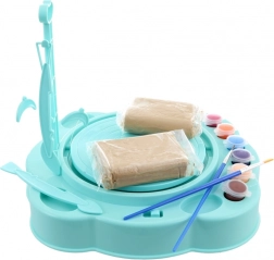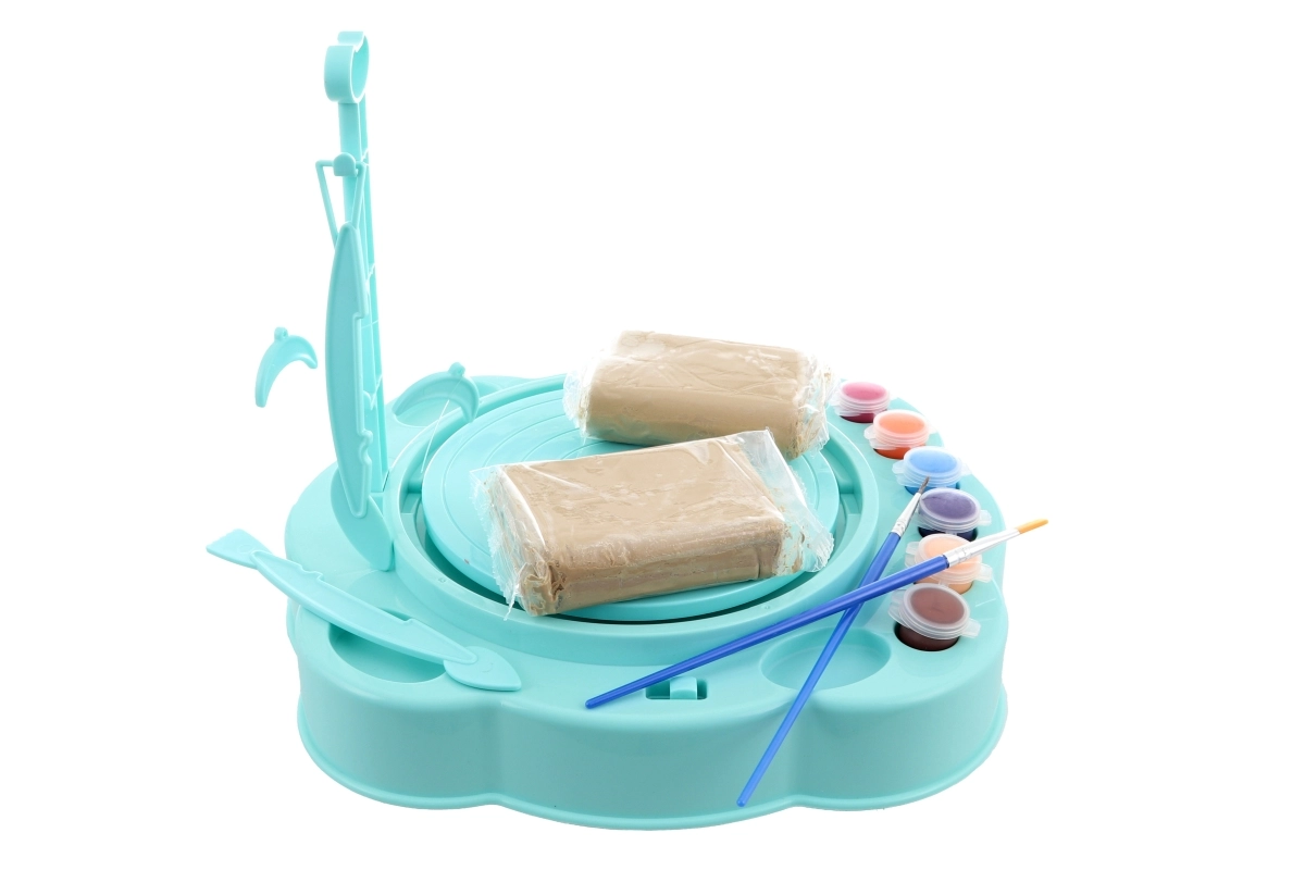 Ez a gyerekeknek szánt fazekaskorong remek szórakozást nyújt, és fejleszti a finommotorikát valamint a kreativitást. Az elemes működésnek köszönhetően bárhol egyszerűen használható – csak tedd rá az agyagot, indítsd el a korongot, és máris készítheted a saját tálkákat, vázákat vagy díszeket. A türkiz kivitel örömet okoz a kis művészeknek és motivál az alkotásra.