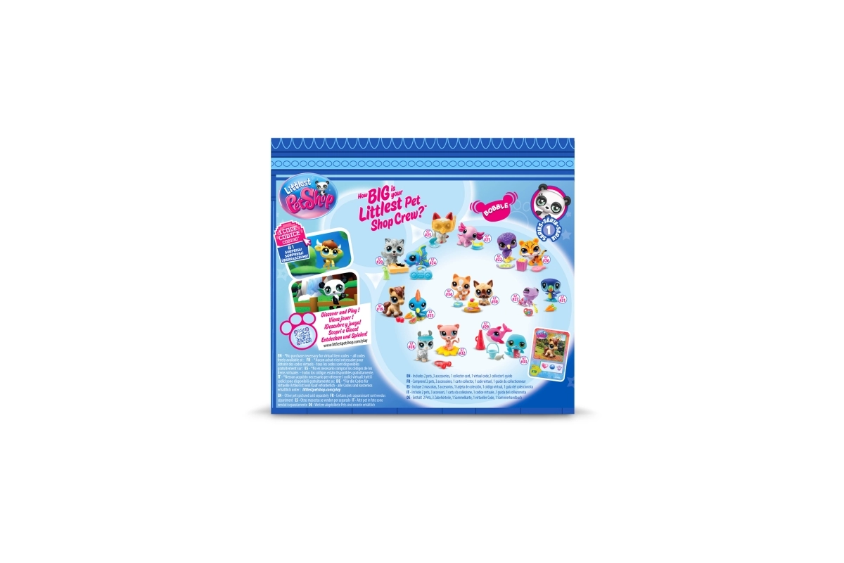 Az 1. széria több mint 65 új barátot hoz – a pandától és a cicától az axolotlig vagy a hangyászsünig. Minden csomag két részletgazdag figurát tartalmaz a jellegzetes nagy szemekkel és mozgó/billegő fejjel, apró tematikus kiegészítőket, valamint kódot a Littlest Pet Shop digitális világának exkluzív tartalmaihoz.
