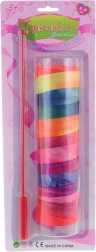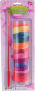 Színes gimnasztikai szalag kis mozgásrajongóknak. Szórakoztatóan fejleszti a koordinációt és az elegáns mozgást. Könnyű műanyag bot kb. 35 cm hosszúságban, kényelmes fogással, a vidám színek ösztönzik a kreatív táncot és játékot. Ideális 3 éves kortól otthonra és kültérre egyaránt.