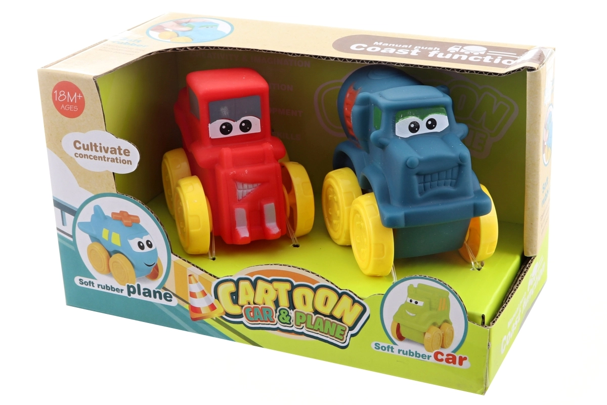 Aranyos baby kisautók 2 darabos csomagban, amelyek minden kis sofőrt felvidítanak. Puha műanyagból készültek, biztonságosak a gyerek kezek számára, különböző színekben és típusokban. Ideális 18 hónapos kortól.