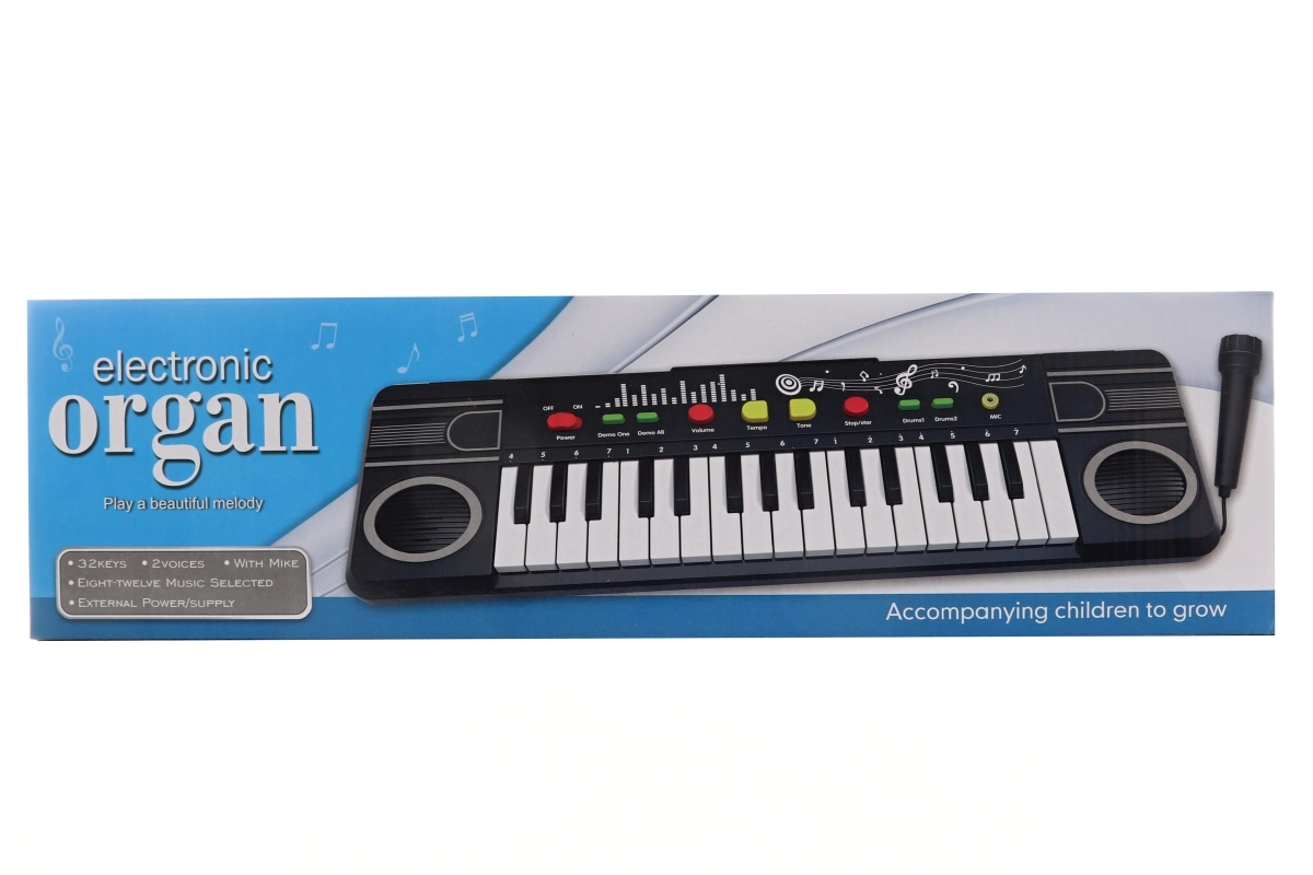 Szórakoztató elemes gyerekzongora 32 billentyűvel és beépített mikrofonnal, amely fejleszti a zenei hallást és a kreativitást. Könnyű műanyag kivitel, egyszerű vezérlés és 3× AA elemmel működik (nem tartozék), ideális választás 3 éves kortól.