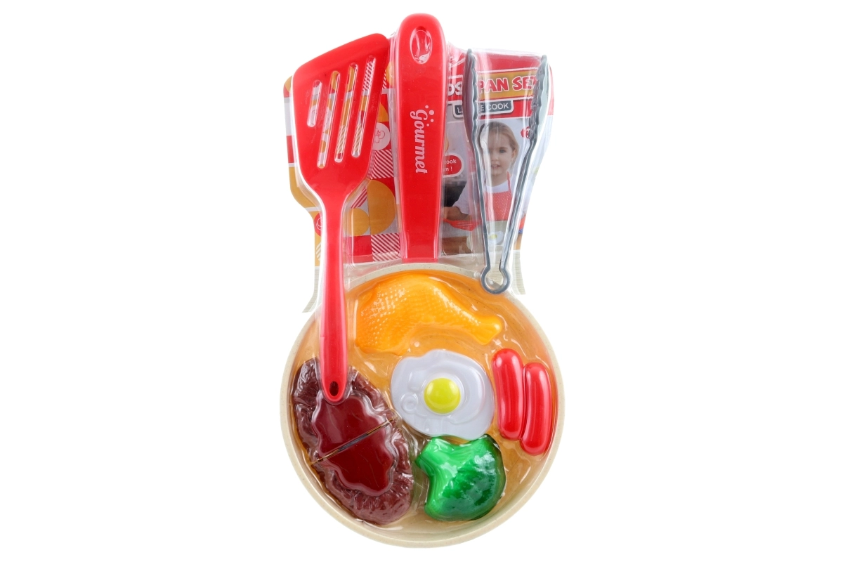 A csomagban mindent megtalálsz: serpenyő, lapát, csipesz és 5 darab élelmiszer (pl. tojás, steak, virsli, hal vagy zöldség). A készlet minőségi műanyagból készült, 3 éves kortól ajánlott.