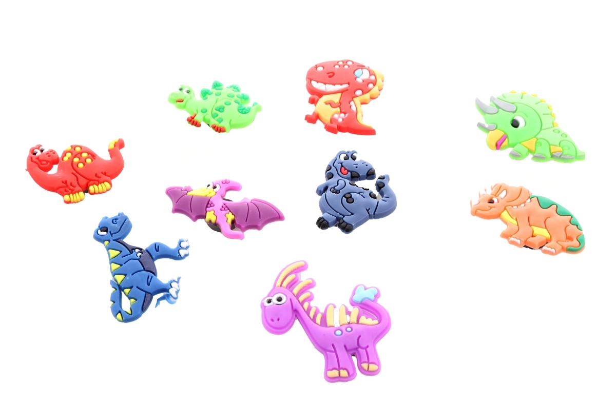 Fedezze fel a vidám és színes dínómintás mágneseket, amelyek gyerekeknek és felnőtteknek egyaránt örömet okoznak. A körülbelül 3,5 cm méretű mágnesek puha műanyagból készültek, és kiválóan alkalmasak dekorációs célokra hűtőszekrényre, mágneses táblára vagy gyerekszobába.