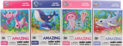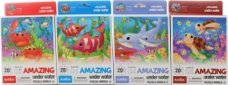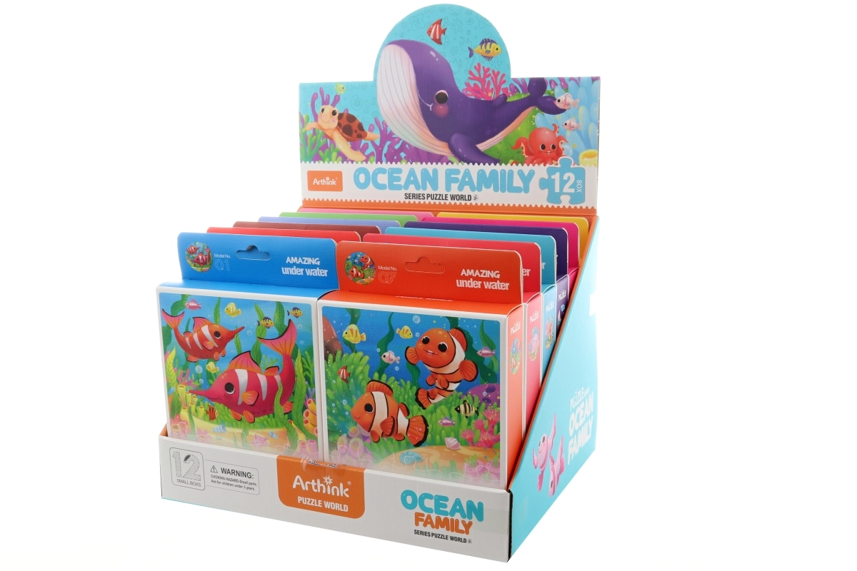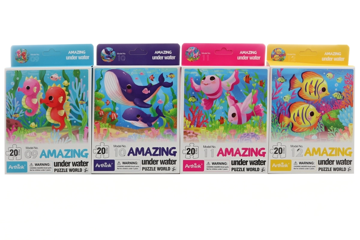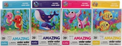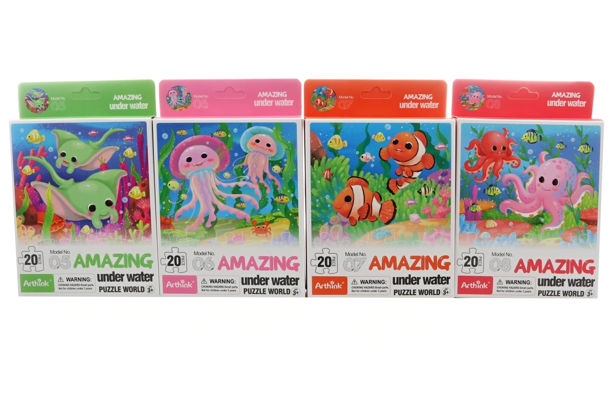 Összeállítva a kirakó kompakt 21 × 19 cm méretű, így könnyen tárolható és szállítható. A 12 elérhető mintából az aktuális raktárkészlet szerint küldünk változatot, mindegyik a víz alatti élet vonzó jeleneteit ábrázolja.