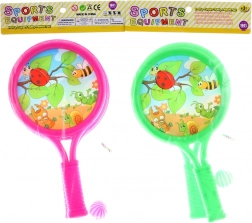 Szórakoztató gyerek játék szett, amely tartalmaz 2 műanyag ütőt, egy labdát és egy kosarat aranyos állatos motívummal. Ideális aktív játékhoz otthon és a szabadban, támogatja a mozgást, a koordinációs készségeket és 3 éves kortól remek szórakozást nyújt.