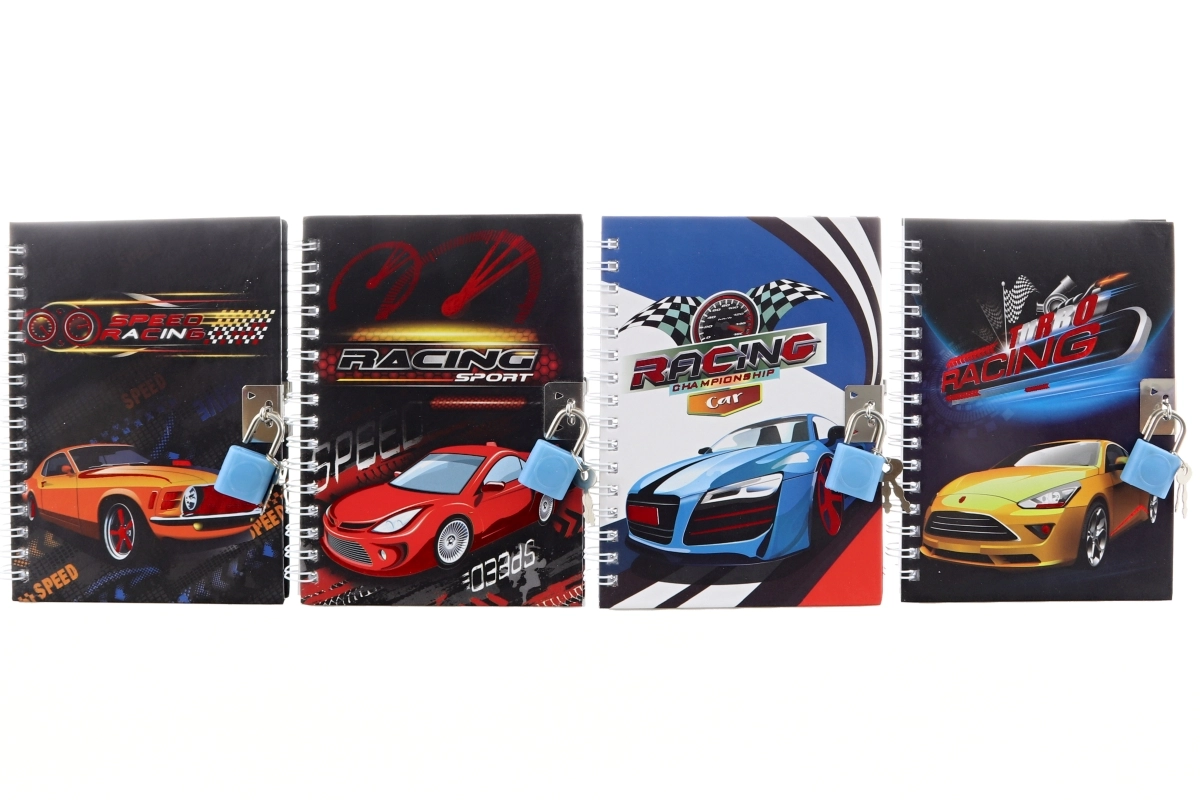 A praktikus, fiús napló lakattal ideális naplóíráshoz, jegyzeteléshez vagy titkos tervekhez. A kemény borító vonzó autós motívumokkal és a masszív fémspirál kényelmes lapozást és hosszú élettartamot biztosít. A csomag része egy lakat két kulccsal a maximális magánszféra érdekében.