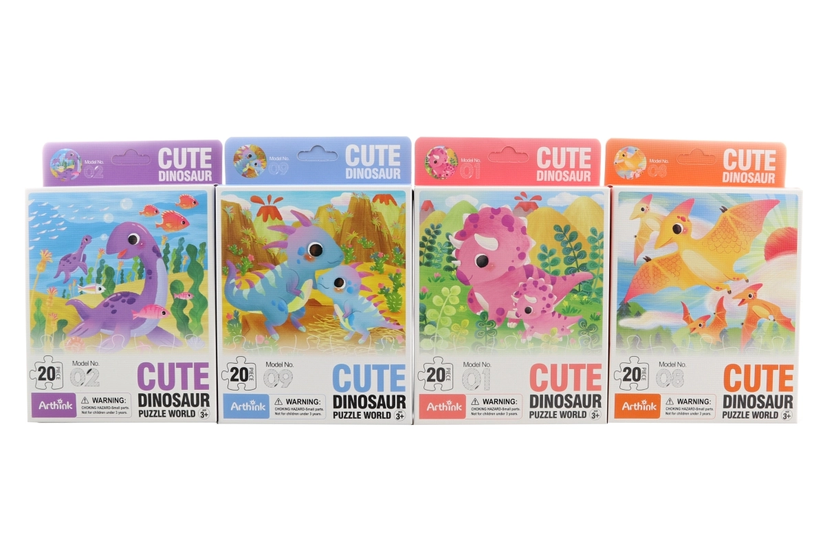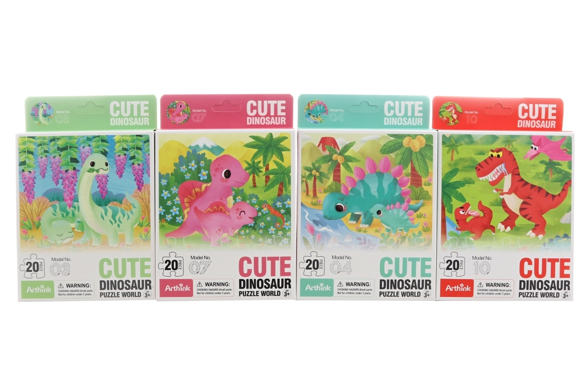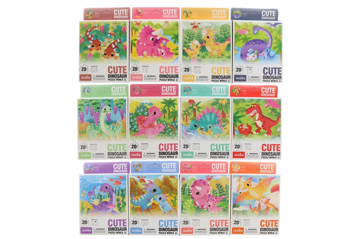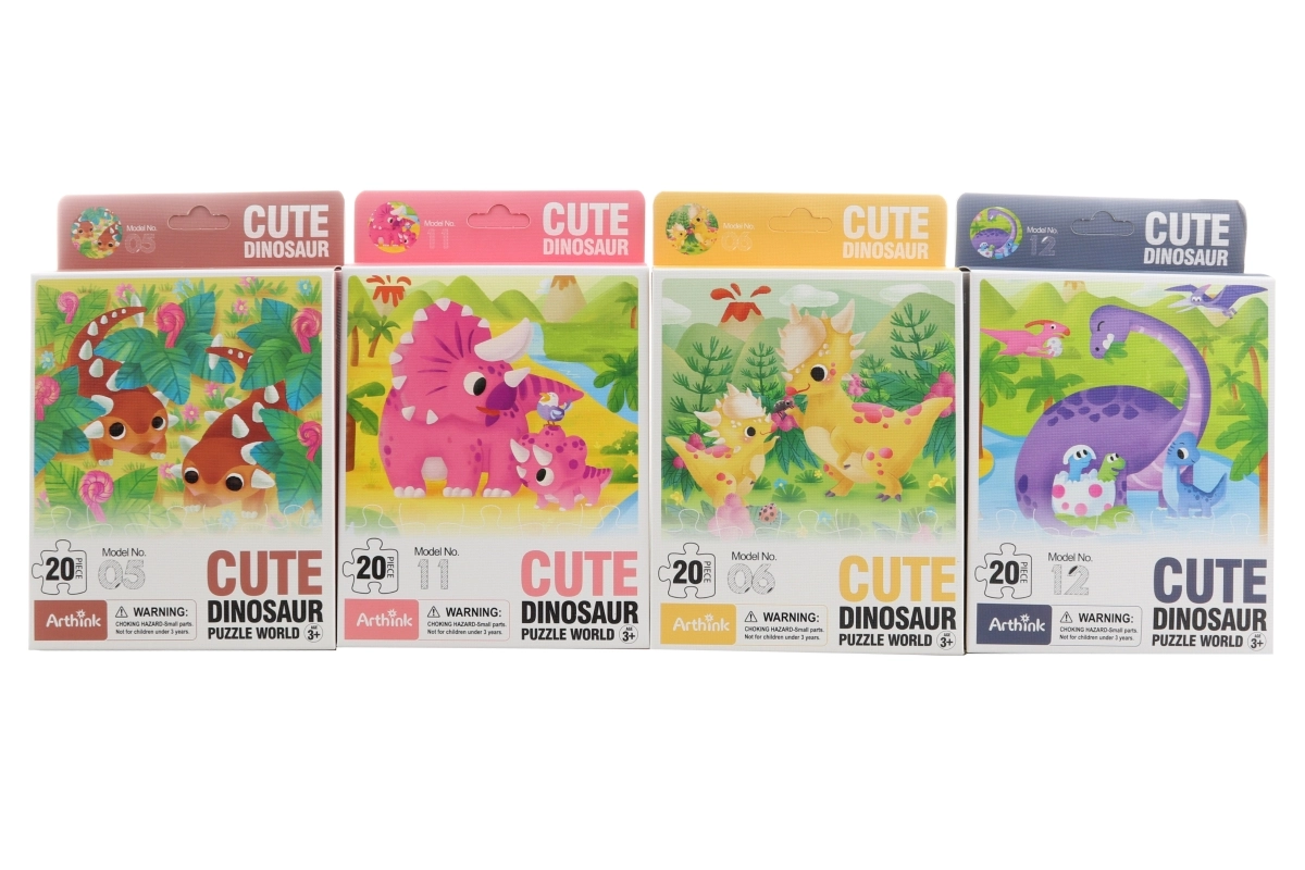 Szórakoztató gyerek kirakó vidám, színes dinoszauruszokkal, amely örömet okoz a 3 évesnél idősebb kis felfedezőknek. 20 masszív karton darabot tartalmaz, könnyen összeállítható, és a nagyobb daraboknak köszönhetően ideális a kis kezek számára. A kész kirakó kompakt mérete 21 × 19 cm, és praktikus dobozban érkezik a könnyű tároláshoz.