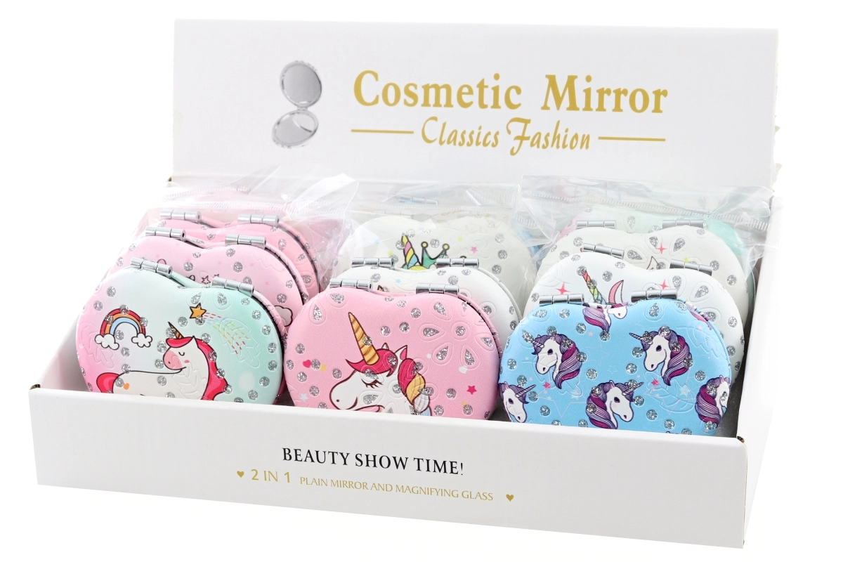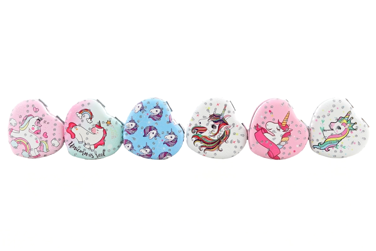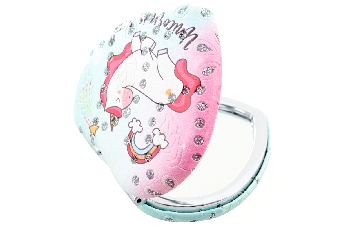 Aranyos és praktikus kiegészítőt keres a kézitáskájába? Ez a szívalakú zsebtükör unikornis motívummal tökéletes választás. Körülbelül 7 × 7 cm-es kompakt mérete biztosítja, hogy mindig kéznél legyen – akár a smink gyors igazításához, akár a megjelenés ellenőrzéséhez a nap folyamán.