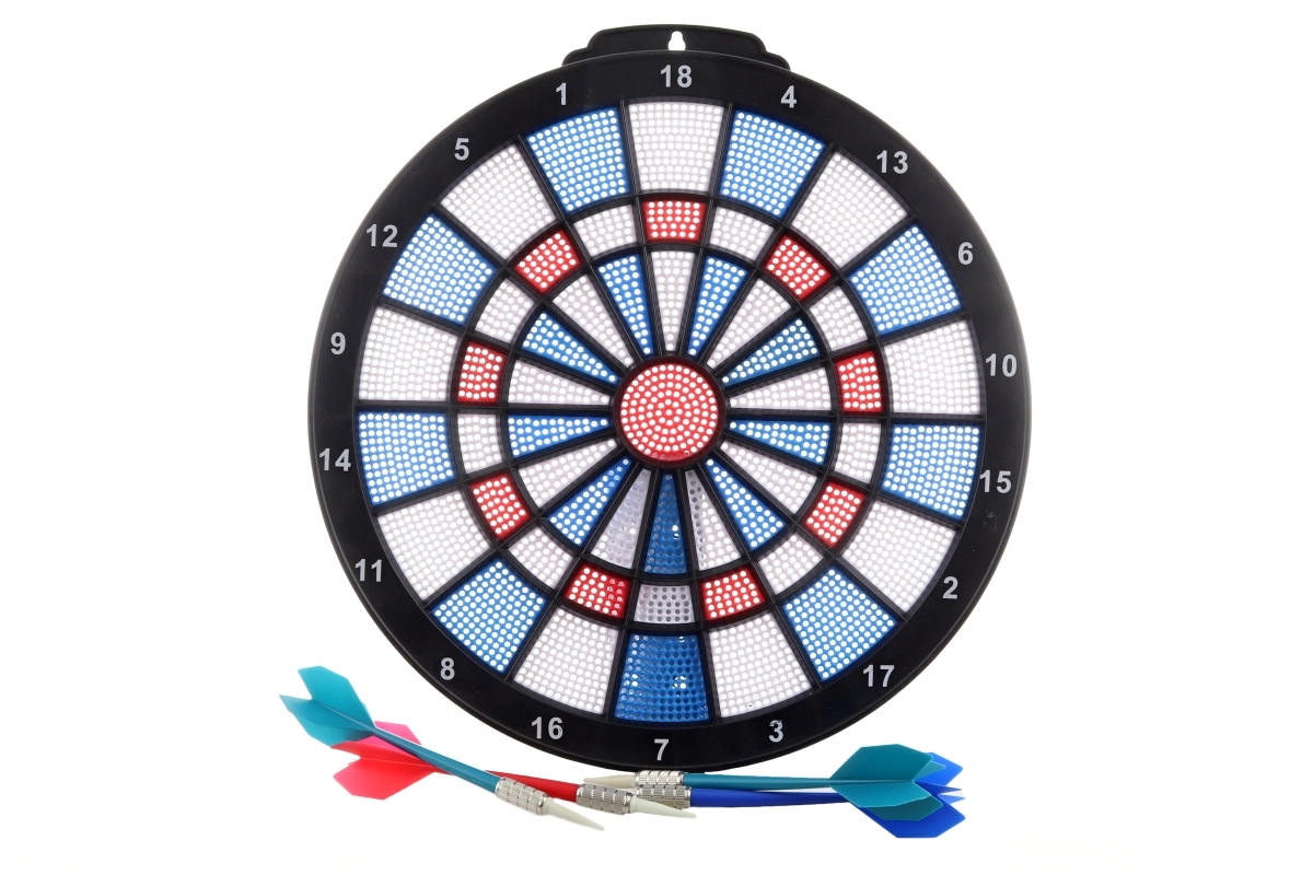 Ez a kompakt készlet egyszerre nyújt szórakozást és pontossági edzést. A kb. 28 cm átmérőjű tábla kiváló kezdőknek és kevésbé igényes játékosoknak. A négy mellékelt nyíl műanyag testtel és fém súlyponttal kiegyensúlyozott repülést és kényelmes fogást biztosít.