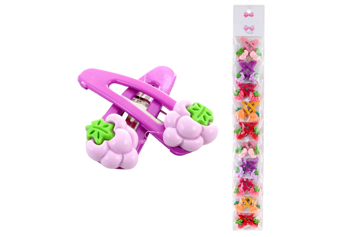 Dobd fel frizurádat játékos, gyümölcsös mintájú csatokkal! Könnyűek, egyszerűen feltehetők és stabilan tartanak, így gyerekeknek és felnőtteknek egyaránt megfelelnek. Minden szett 2 darab csatot tartalmaz különféle színkombinációkban, tasakba csomagolva.