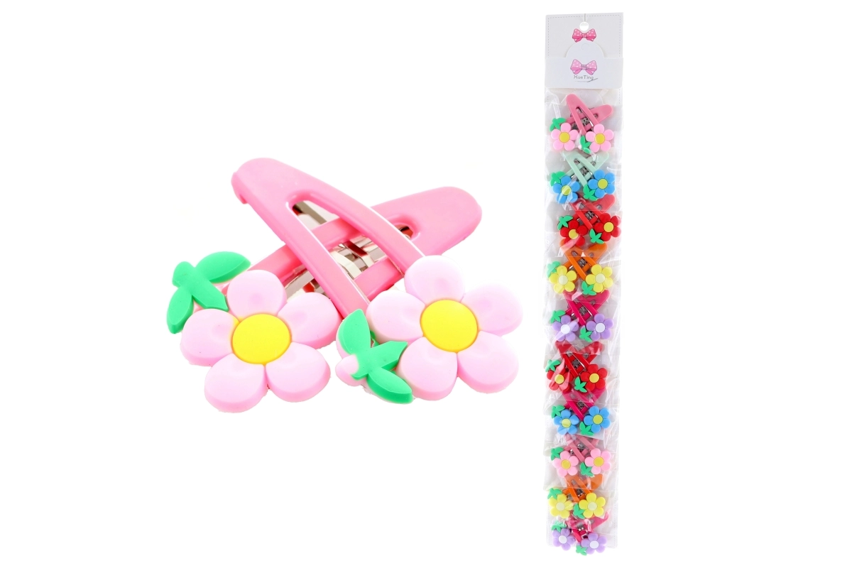 Adj finom, lányos bájt a frizurának virágos hajcsatokkal. Könnyűek, jól tartanak még vékony hajon is, és a különböző színeknek köszönhetően könnyen összehangolhatók ruhákkal és kiegészítőkkel. Ideálisak mindennapi viselésre iskolába, játszótérre és ünnepi pillanatokra.
