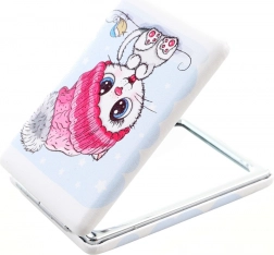Stílusos zsebtükör állatos motívumokkal, amely vidám dizájnjával és praktikusságával örömet szerez. Kinyitás után kettős tükör segíti a smink gyors ellenőrzését vagy a megjelenés igazítását útközben.