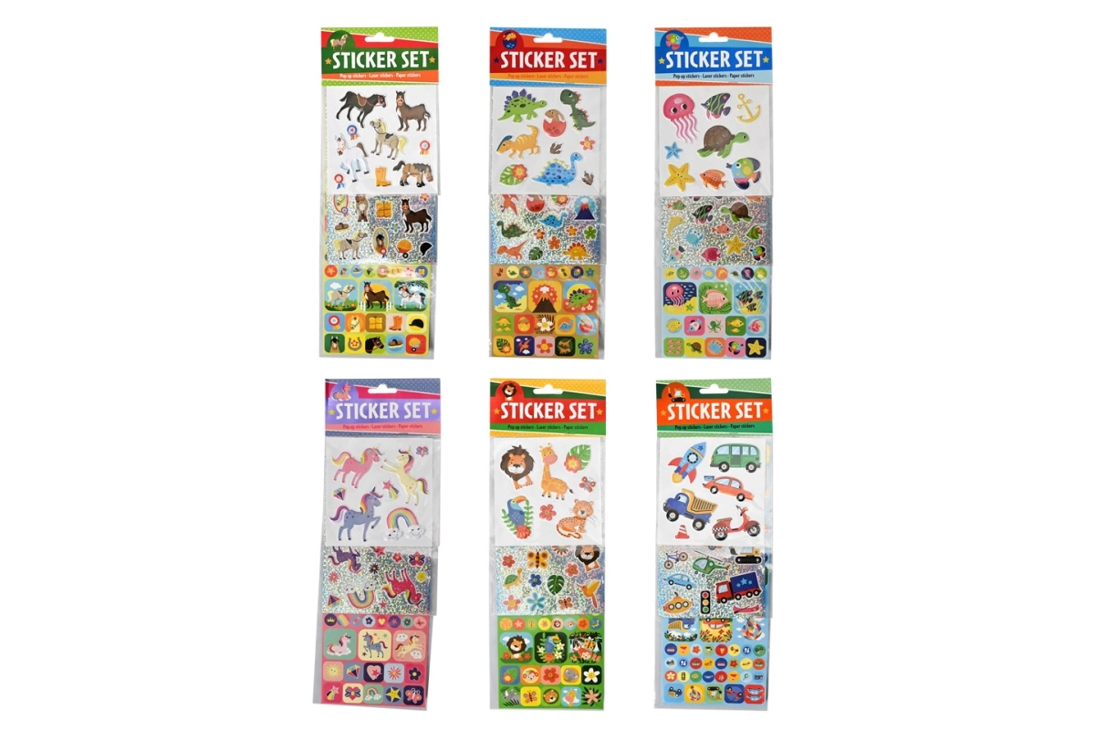 A motívumok keveréke (állatok, dinoszauruszok, víz alatti világ, egyszarvúak, járművek és mások) segíti a gyerekek fantáziájának és finommotorikájának fejlesztését. A csomag praktikus, akasztható tasakban érkezik, így a matricák könnyen tárolhatók és ajándékozhatók.